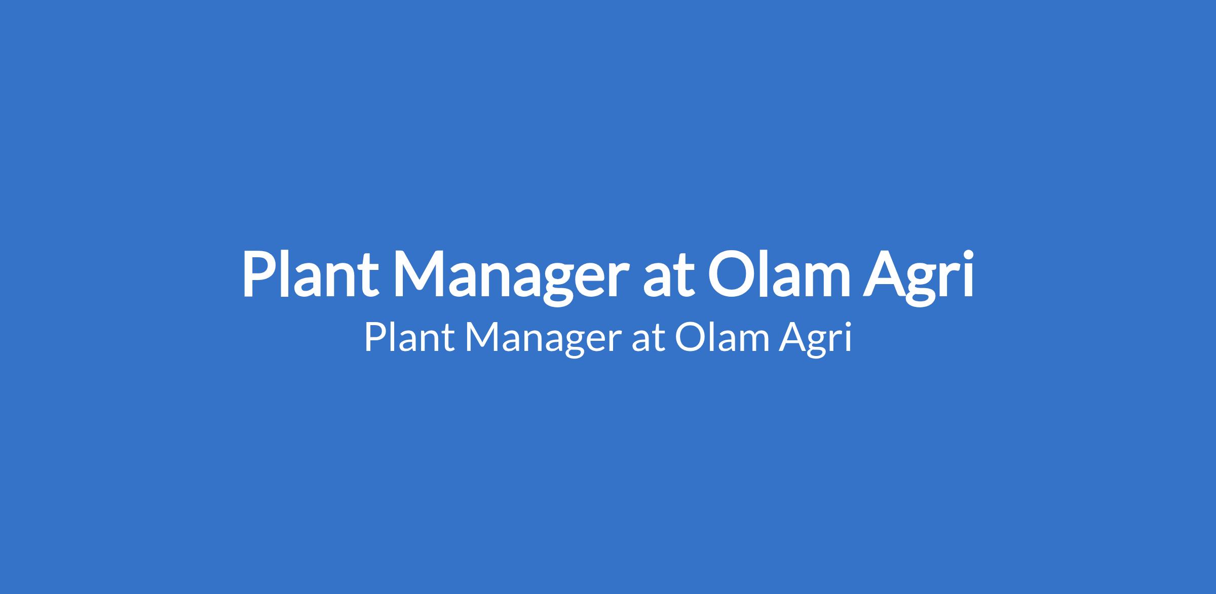 Plant Manager at Olam Agri