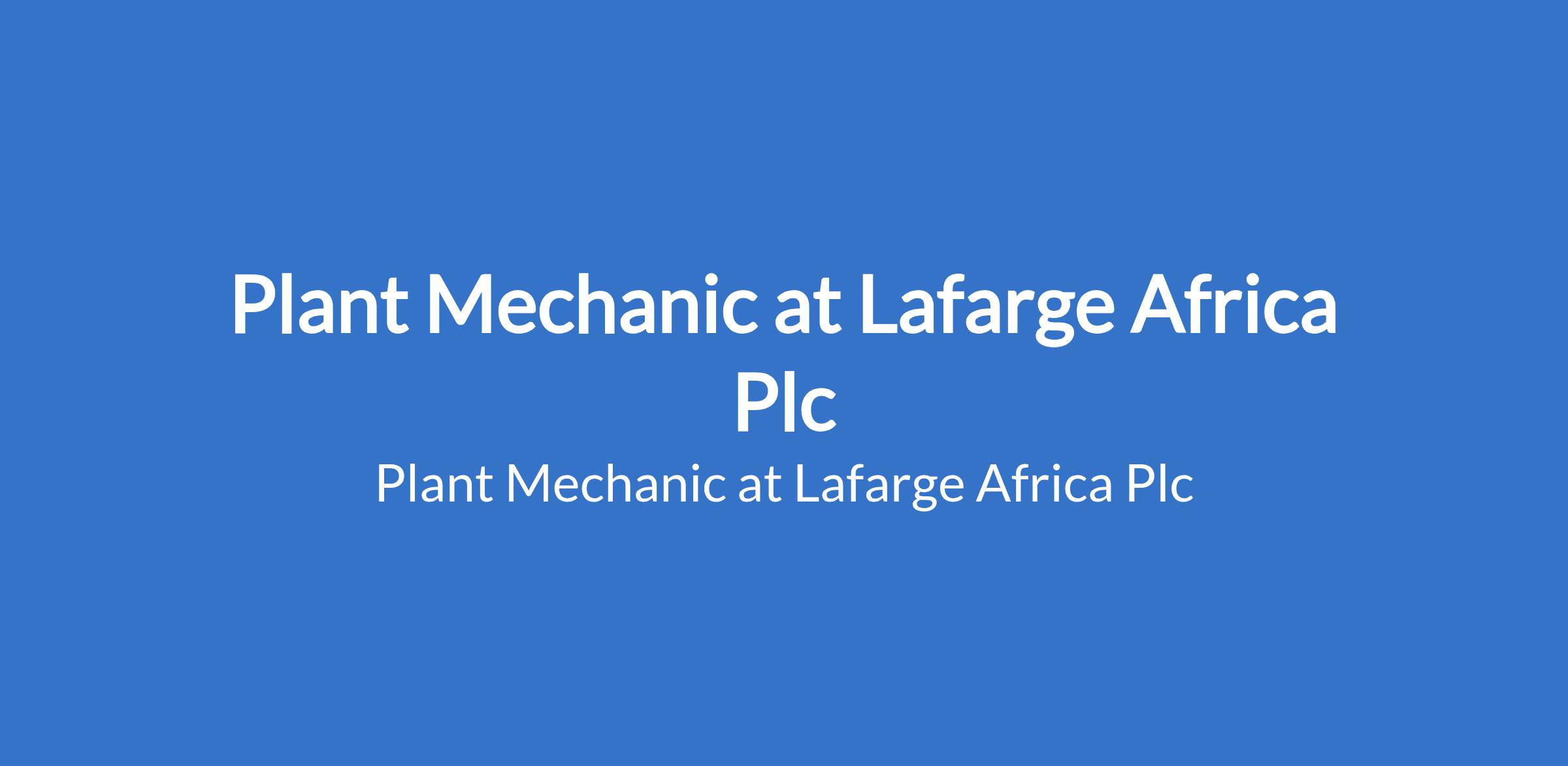 Lafarge Africa Plc is recruiting to fill the position of: Plant Mechanic. The position is located in Lagos State. Interested candidates should possess a Technical Education or equivalent in Mechanical or other related field with at least 4 years experience in the Cement or similar industry; Computer literacy is essential