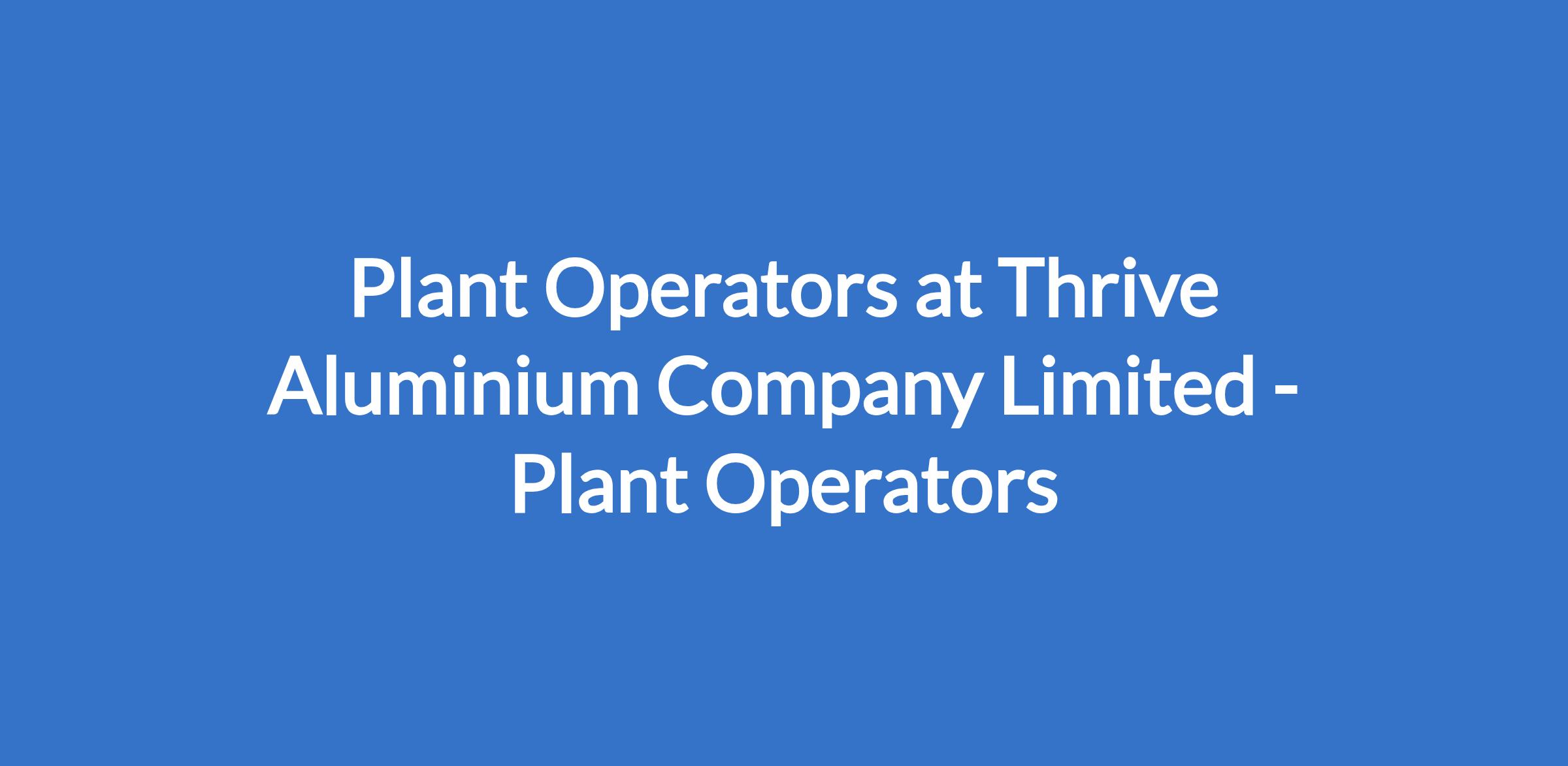 Plant Operators at Thrive Aluminium Company Limited - Plant Operators