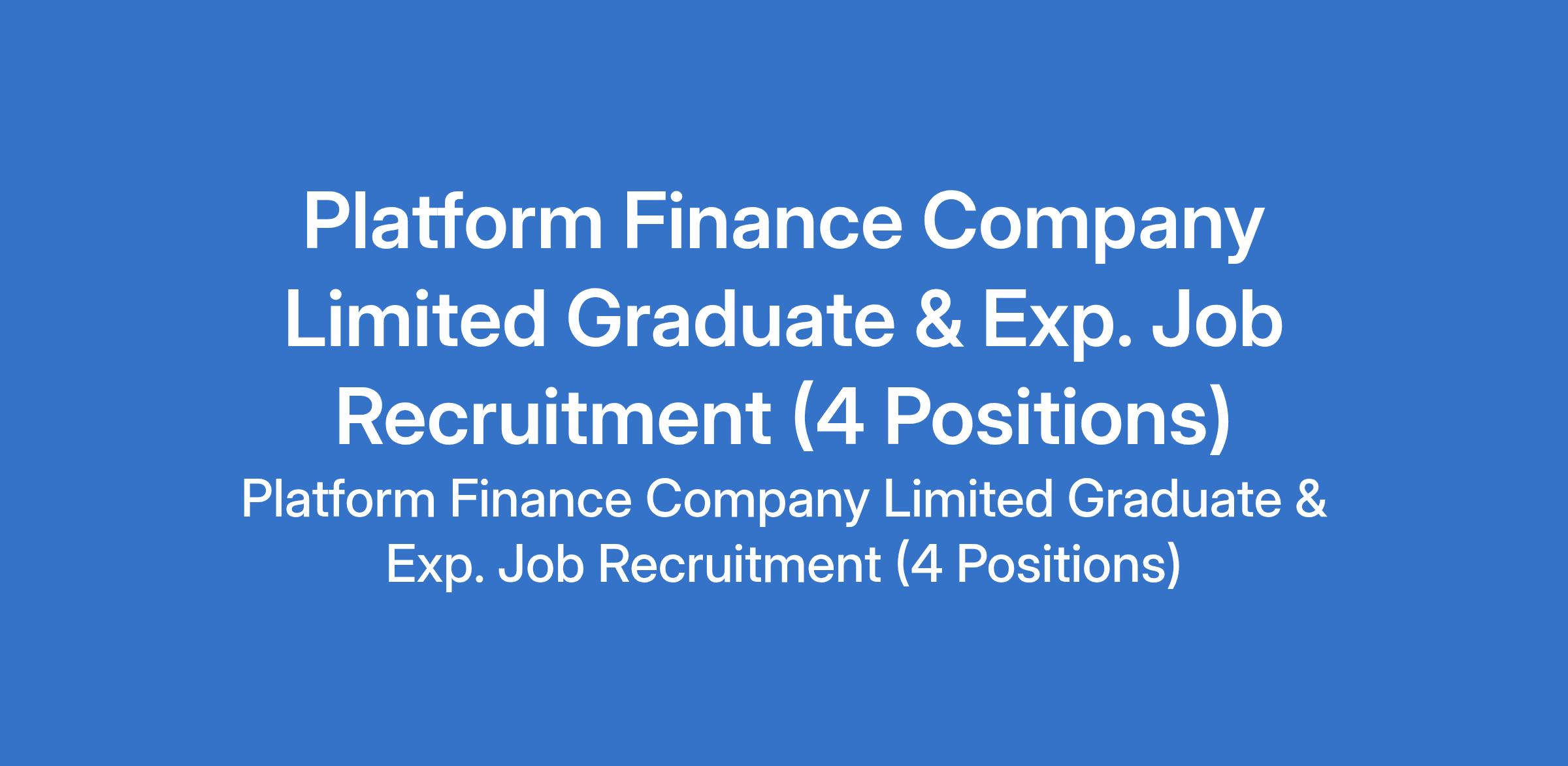 Platform Finance Company Limited is recruiting suitably qualified candidates to fill the following graduate & experienced positions in Lagos State: NYSC Youth Corp Member (Female); Pool Car / Executive Driver; Head, Legal; and Credit Sales / Marketing Executive.
