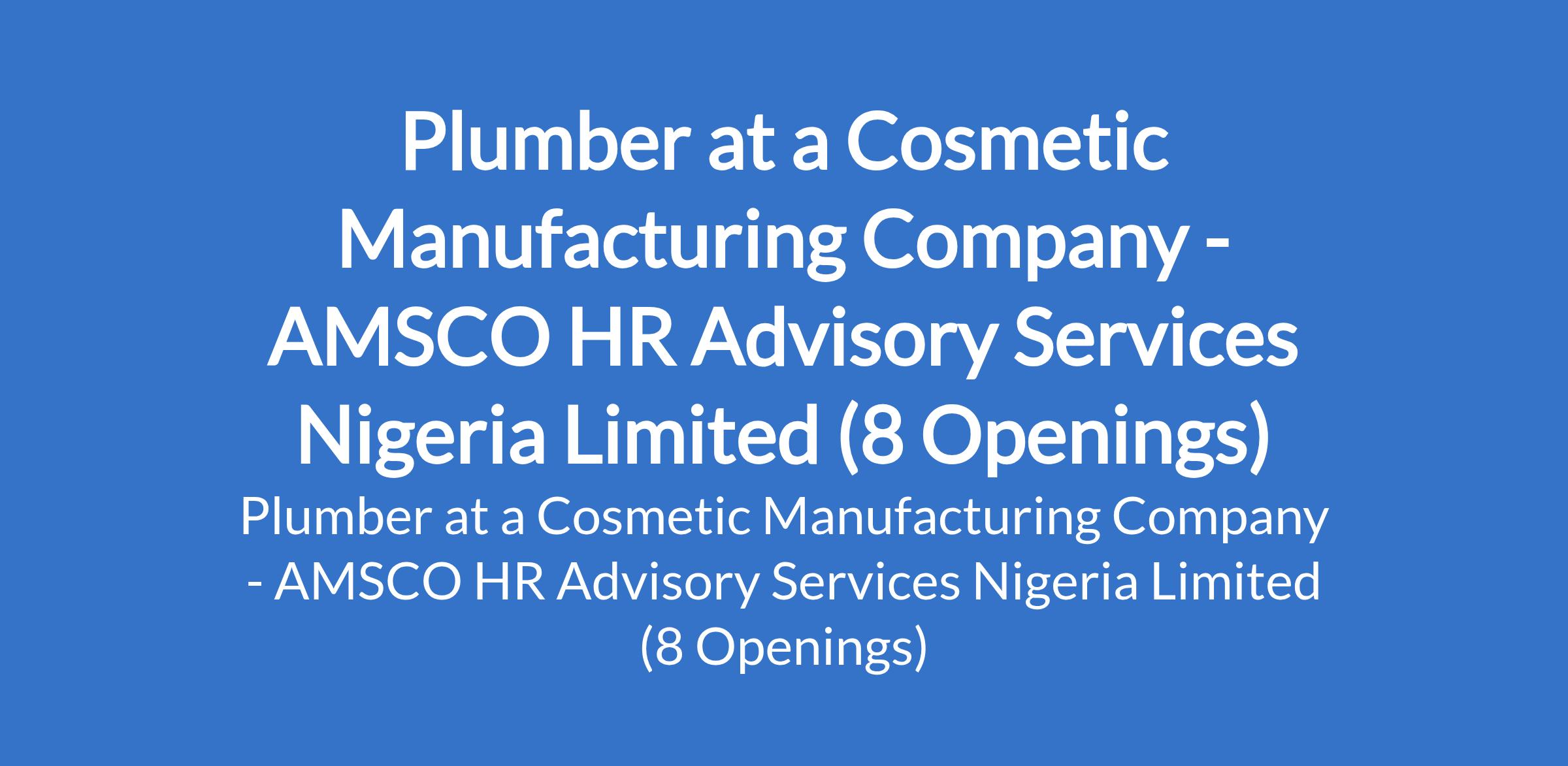 Plumber at a Cosmetic Manufacturing Company - AMSCO HR Advisory Services Nigeria Limited (8 Openings)