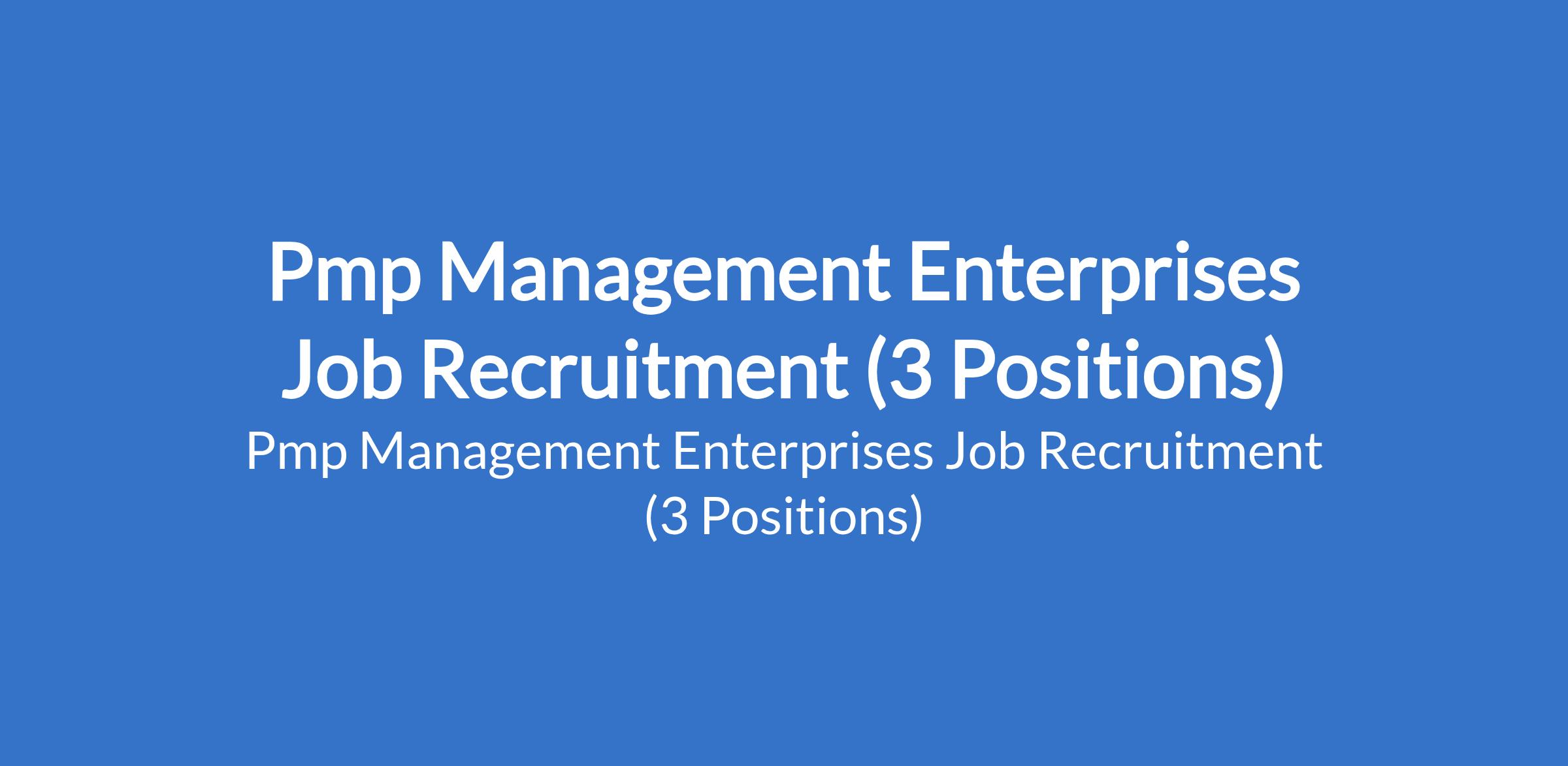 Pmp Management Enterprises Job Recruitment (3 Positions)
