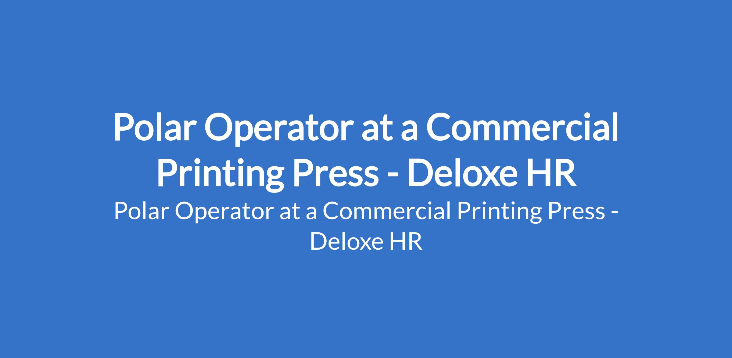 Deloxe HR - Our client, a commercial printing press, is recruiting to fill the position of: Polar Operator. The position is located in Ikeja, Lagos State. Interested candidates should possess relevant qualifications with 3 - 5 years of work experience.
