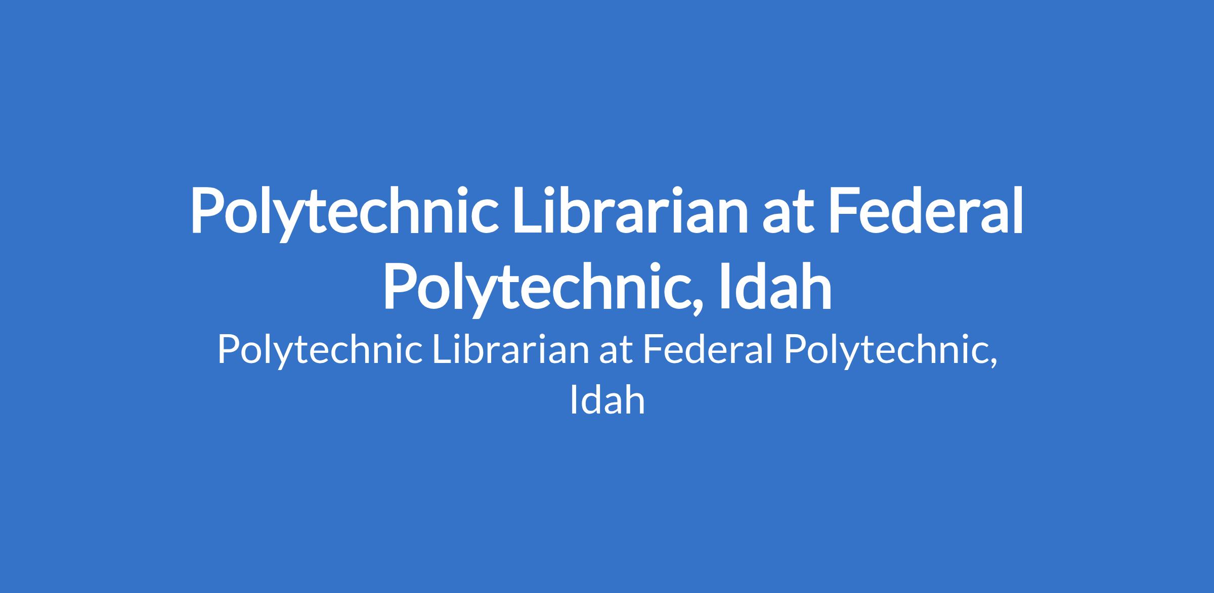 Federal Polytechnic, Idah invites applications from suitable candidates to fill the position of: Polytechnic Librarian. The position is located in Idah, Kogi State. Interested candidates should possess a Master's Degree from a recognized institution in Library Science or Library and Information Science, while possession of doctorate degree (Ph.D) will be an added advantage with at least 18 years' cognate experience in tertiary institutions, at least ten (10) years of which must have been gained in a Polytechnic or similar TVET institution.