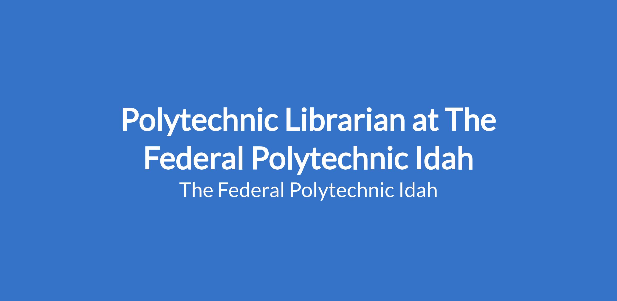 He/she is one of the Principal Officers of the Polytechnic. In addition to the proven experience in library management and leadership, the successful candidate must have a demonstrable passion for academic endeavours and must also be credible.