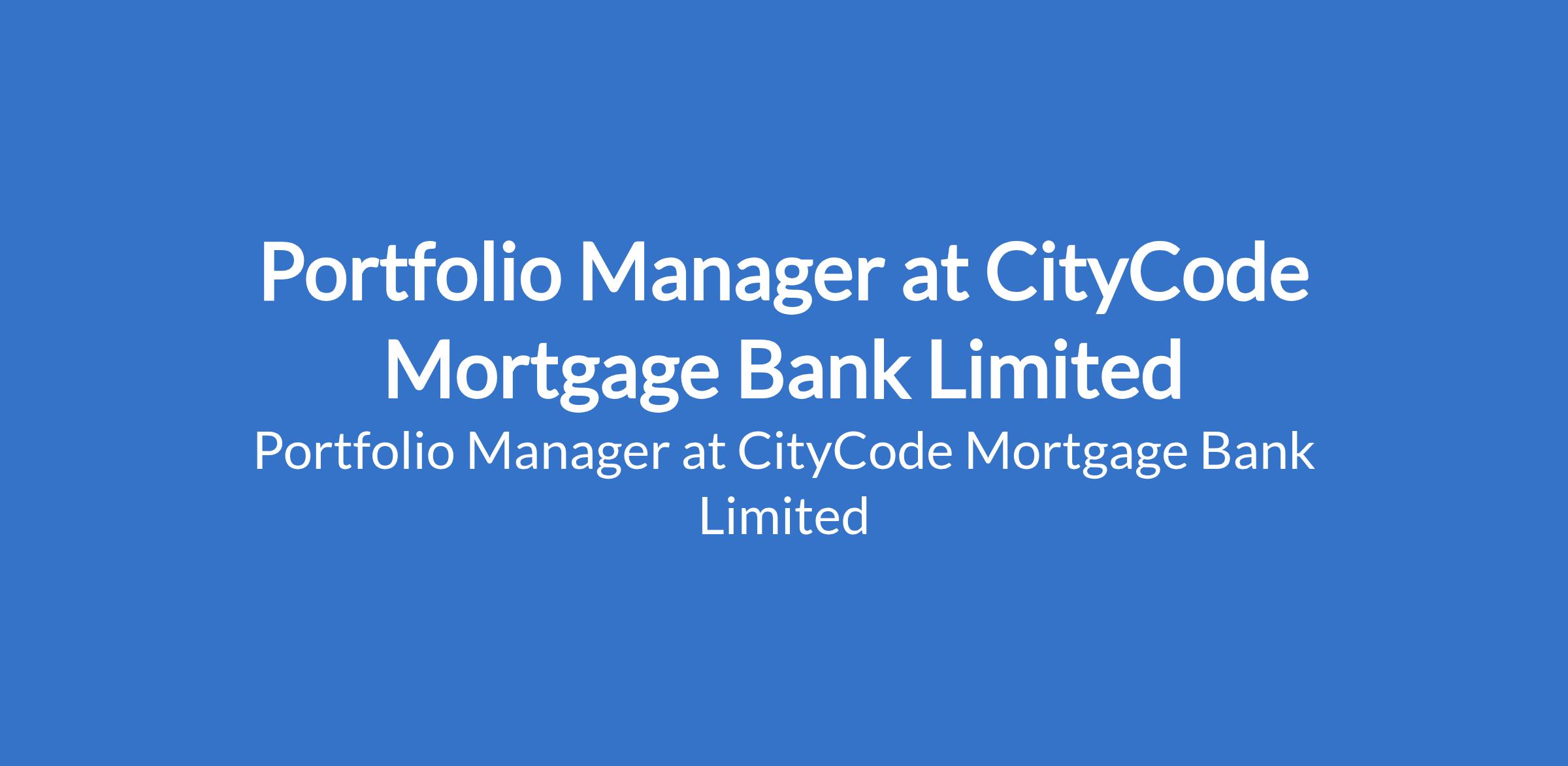 CityCode Mortgage Bank Limited is recruiting to fill the position of: Portfolio Manager. The position is located in Lagos Island, Lagos State. Interested candidates should possess a B.Sc. in Finance, Economics, Accounting, or a related discipline. An MBA or M.Sc. in Finance / Investment Management is an advantage with a minimum of 6 years' experience in investment management, portfolio management, or asset management, with a demonstrable track record of managing client portfolios.