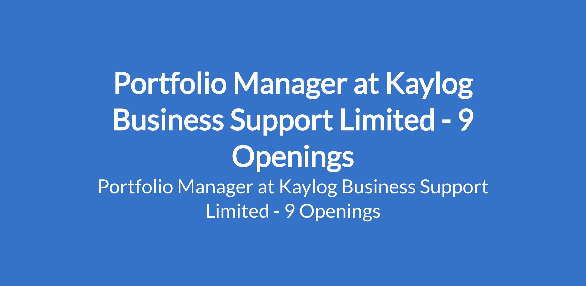 Kaylog Business Support Limited is recruiting to fill the position of: Portfolio Manager. The position is located in Igbogila, Sango, Ilaro, Ifo, Abeokuta, Sagamu, Idiroko, Owode Yewa - Ogun and Ibadan - Oyo States. Salary: N100,000 - N200,000 / month. Interested candidates should possess a minimum of an OND qualification in any discipline with proven experience in microfinance, banking, or financial services.