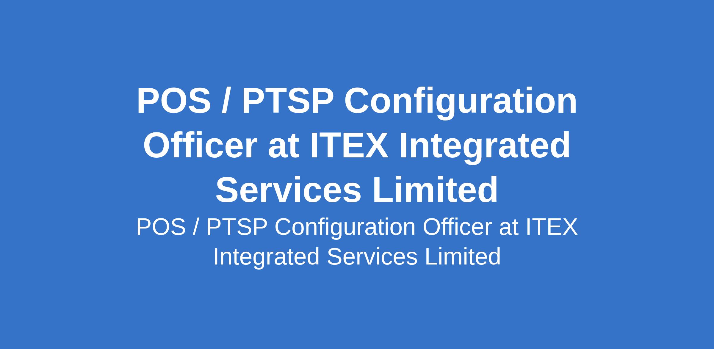 POS / PTSP Configuration Officer at ITEX Integrated Services Limited