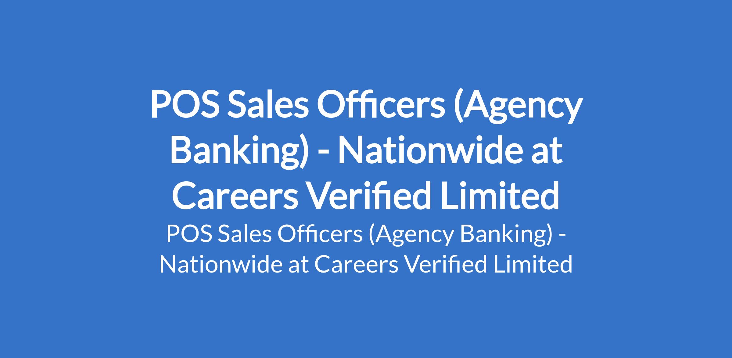 Careers Verified Limited is recruiting to fill the position of: POS Sales Officer (Agency Banking). The position is required nationwide. Interested candidates should possess a minimum of an HND / B.Sc. with 1 year of experience in POS sales, agency banking, fintech, or field sales.