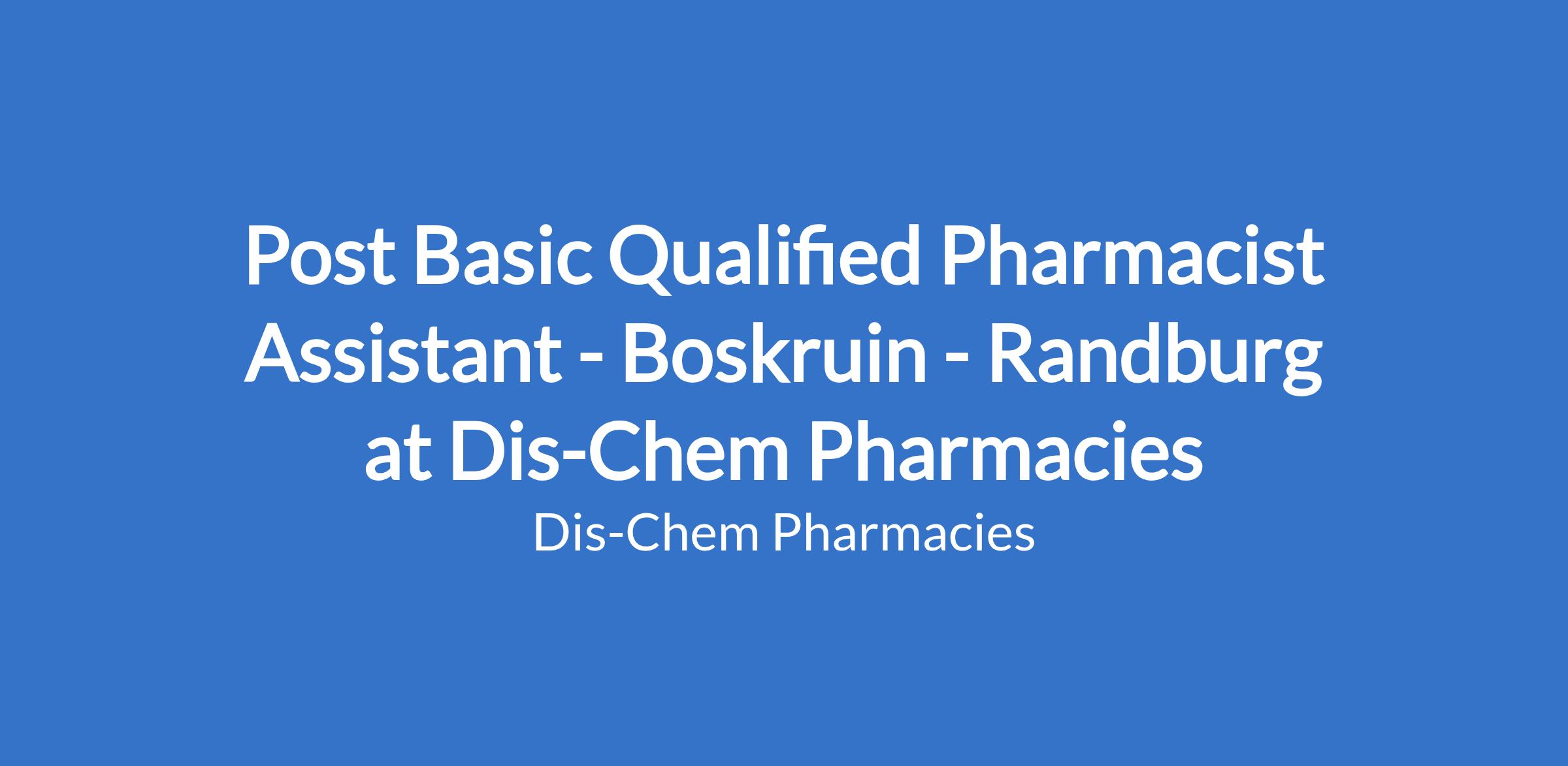 Post Basic Qualified Pharmacist Assistant - Boskruin - Randburg at Dis-Chem Pharmacies
