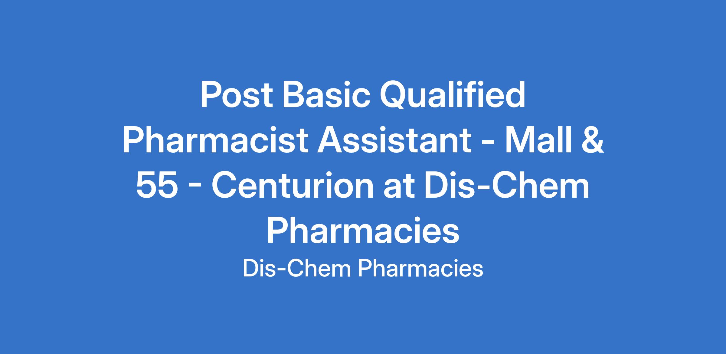 Post Basic Qualified Pharmacist Assistant - Mall & 55 - Centurion at Dis-Chem Pharmacies