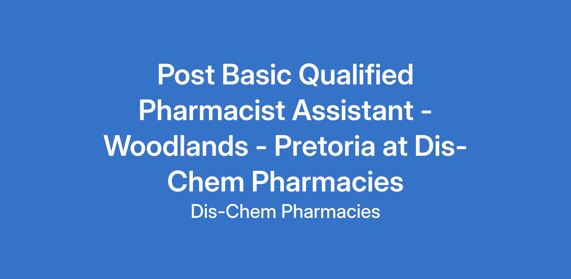 Post Basic Qualified Pharmacist Assistant - Woodlands - Pretoria at Dis-Chem Pharmacies