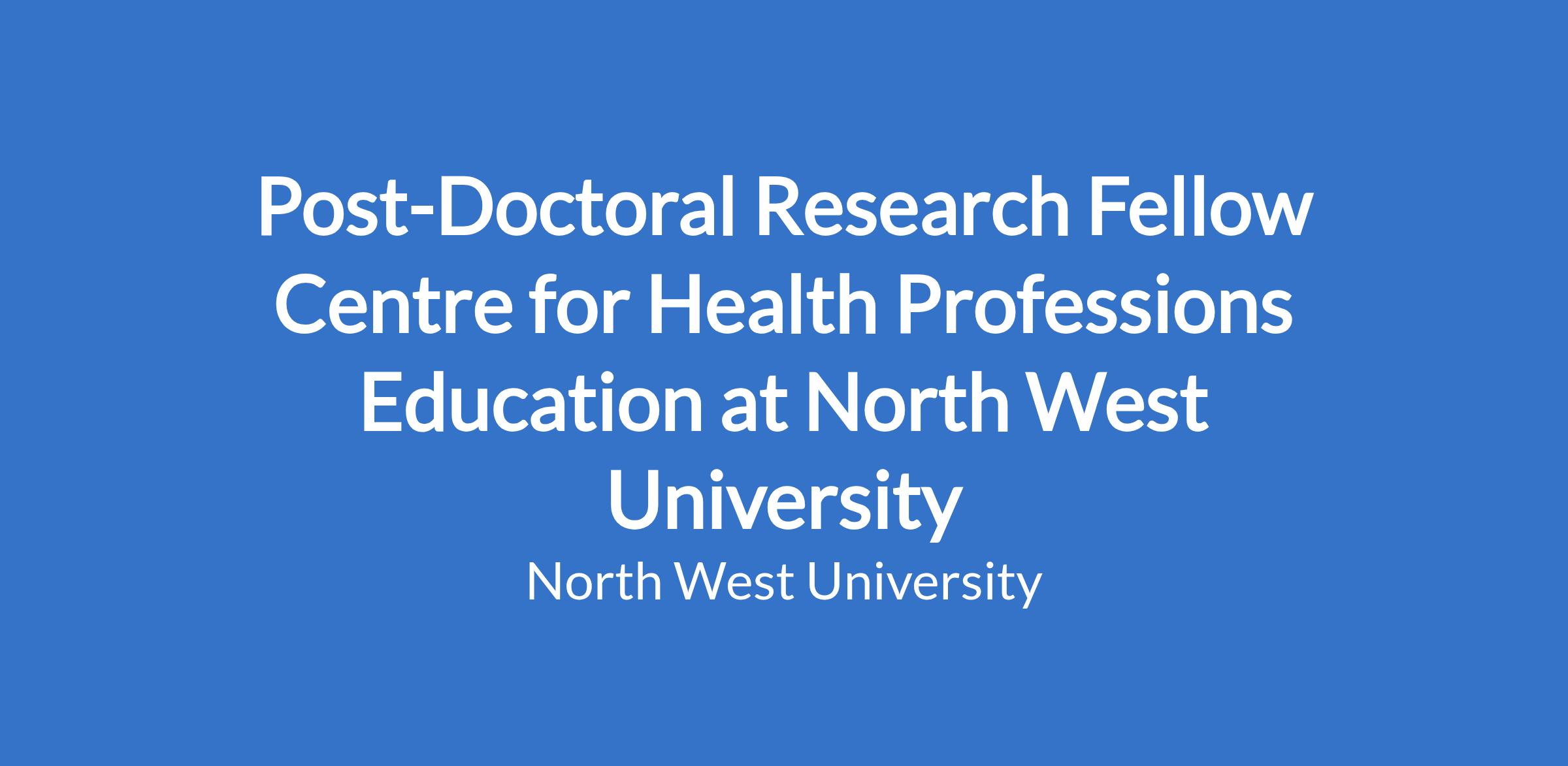 Post-Doctoral Research Fellow Centre for Health Professions Education at North West University