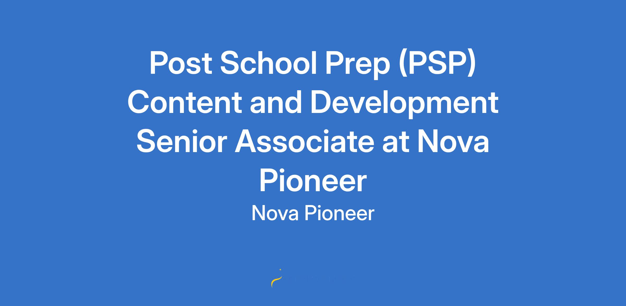Post School Prep (PSP) Content and Development Senior Associate at Nova Pioneer