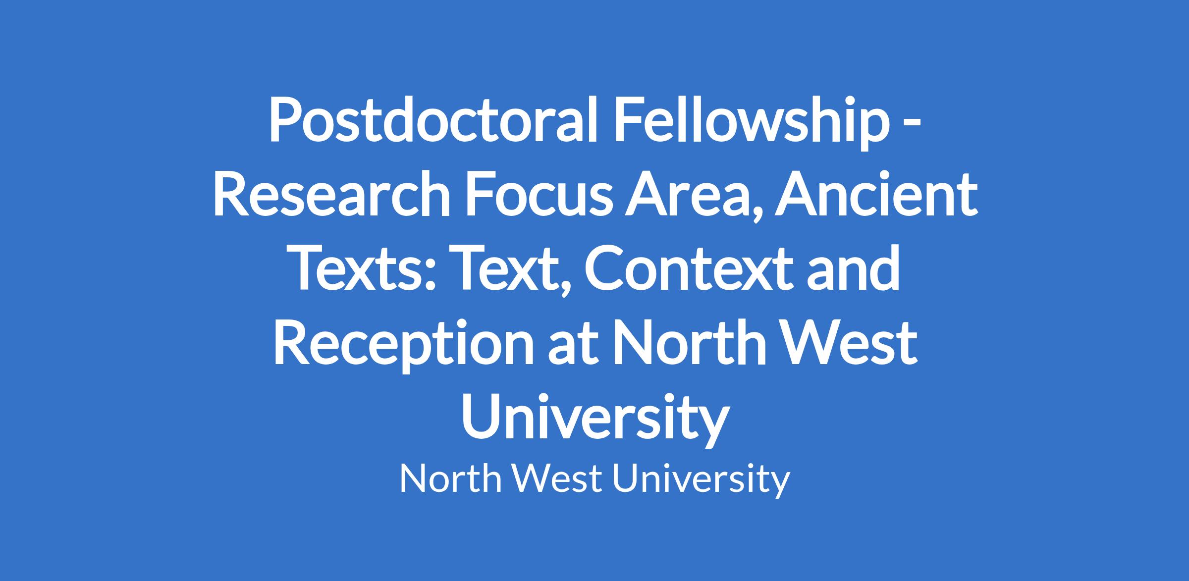 Postdoctoral Fellowship - Research Focus Area, Ancient Texts: Text, Context and Reception at North West University