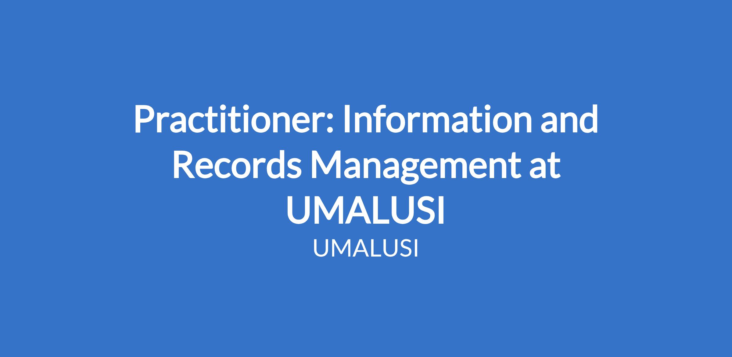 Practitioner: Information and Records Management at UMALUSI