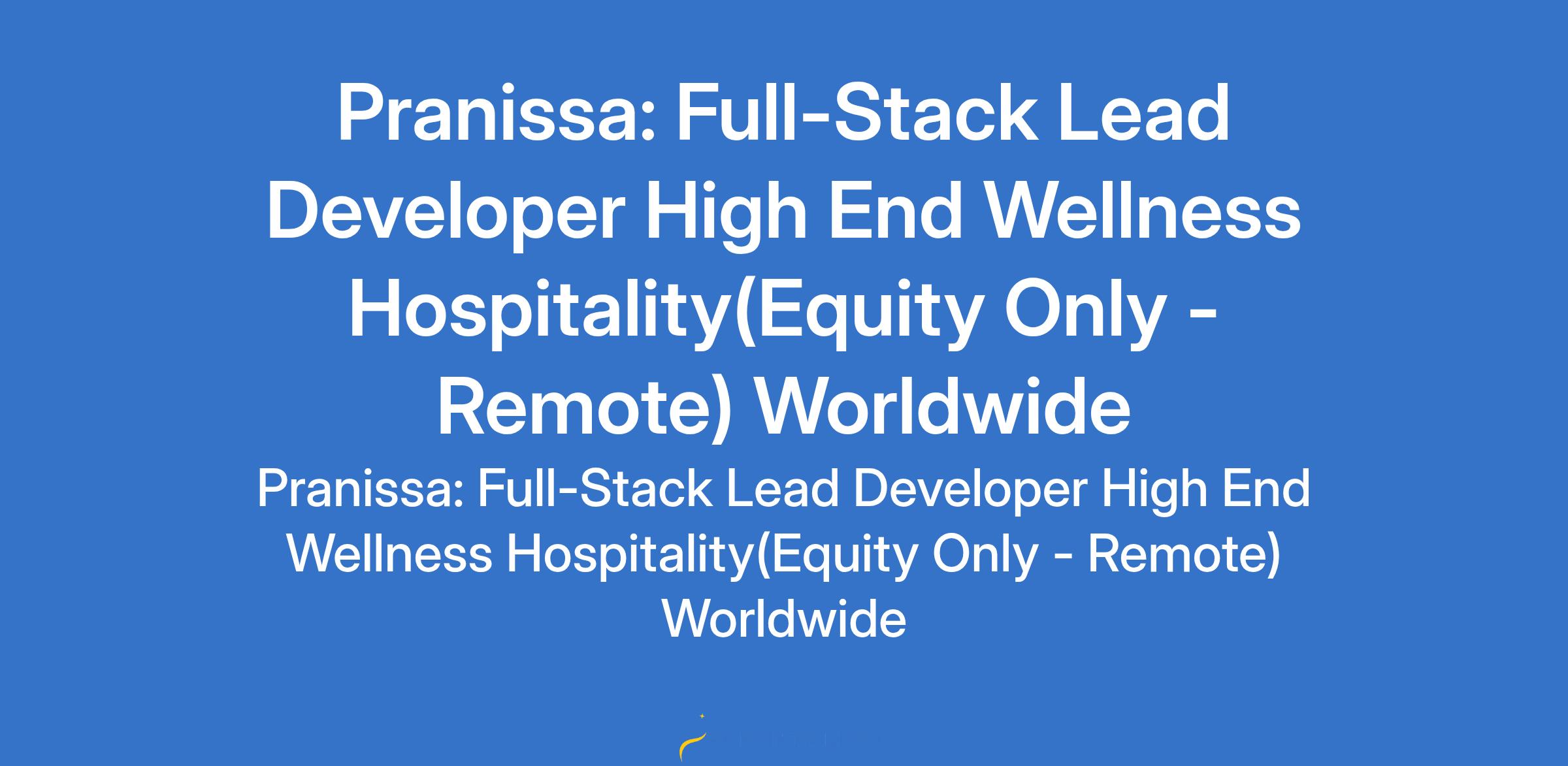 We're seeking a Full-Stack Lead Developer for a flexible, remote role. You'll architect, develop, and scale Pranissa's digital ecosystem - from the AI-powered wellness engine to the client-facing web platform.