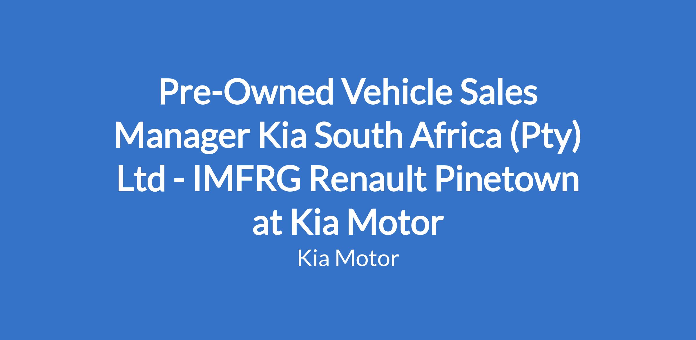 Pre-Owned Vehicle Sales Manager Kia South Africa (Pty) Ltd - IMFRG Renault Pinetown at Kia Motor