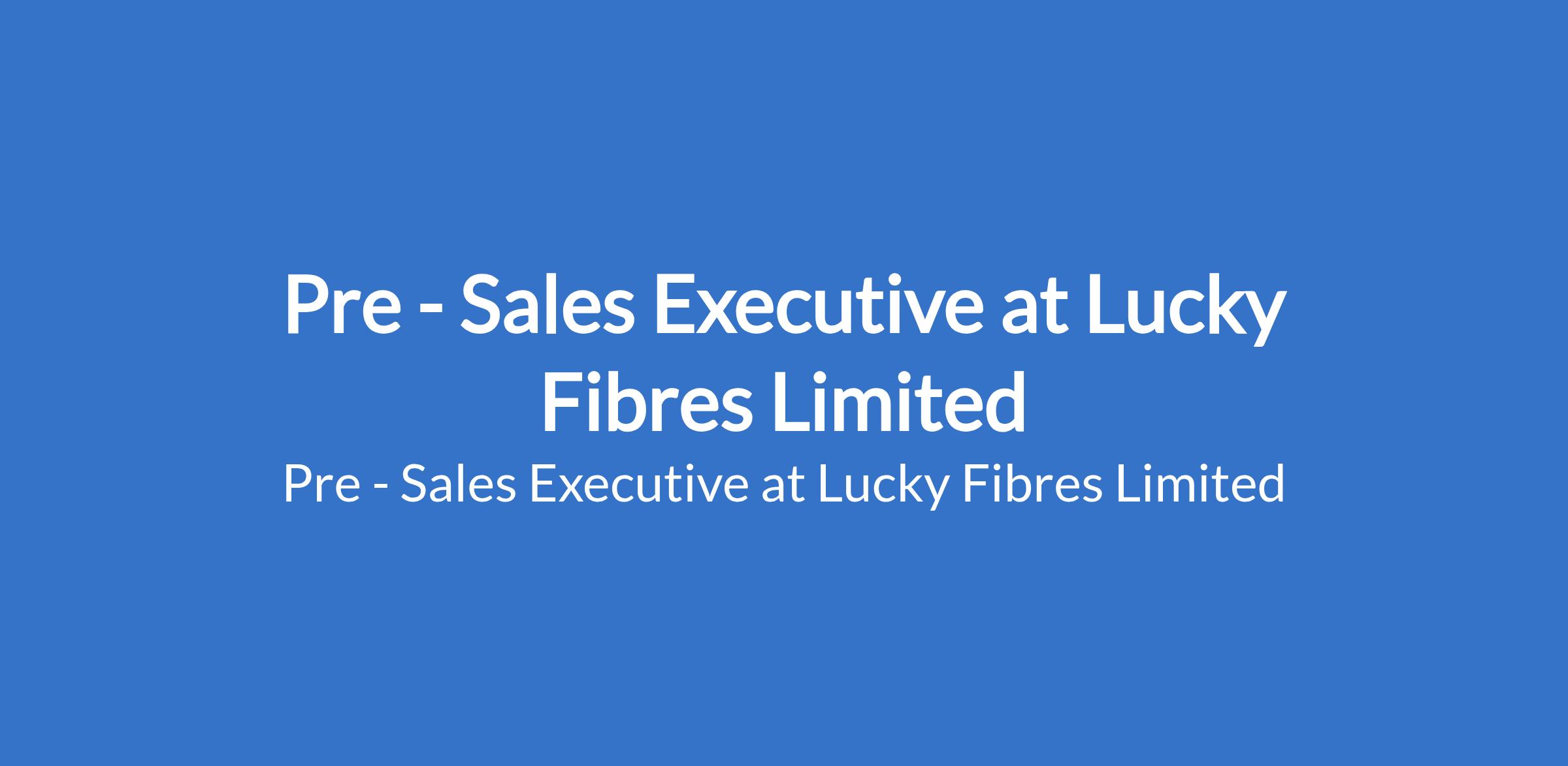 Lucky Fibres Limited is recruiting to fill the position of: Pre - Sales Executive. The position is located in Surulere, Yaba - Lagos State. Interested candidates should possess a minimum of HND / Bachelors Degree in any related field with 13 years experience in sales or FMCG field operations.