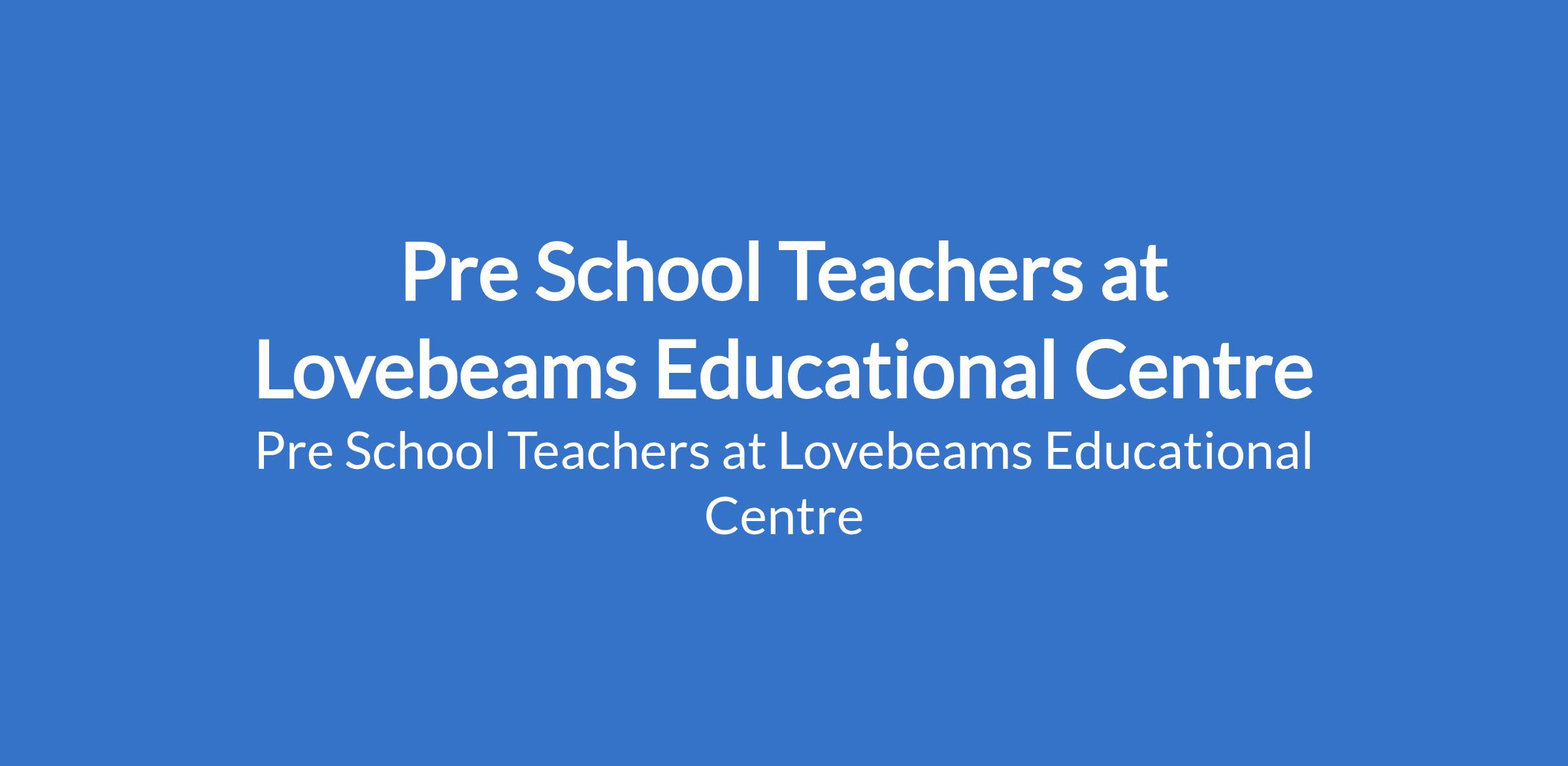 Lovebeams Educational Centre is recruiting to fill the position of: Pre School Teacher. The position is located in Ajao, Lagos State. Interested candidates should possess relevant qualifications.