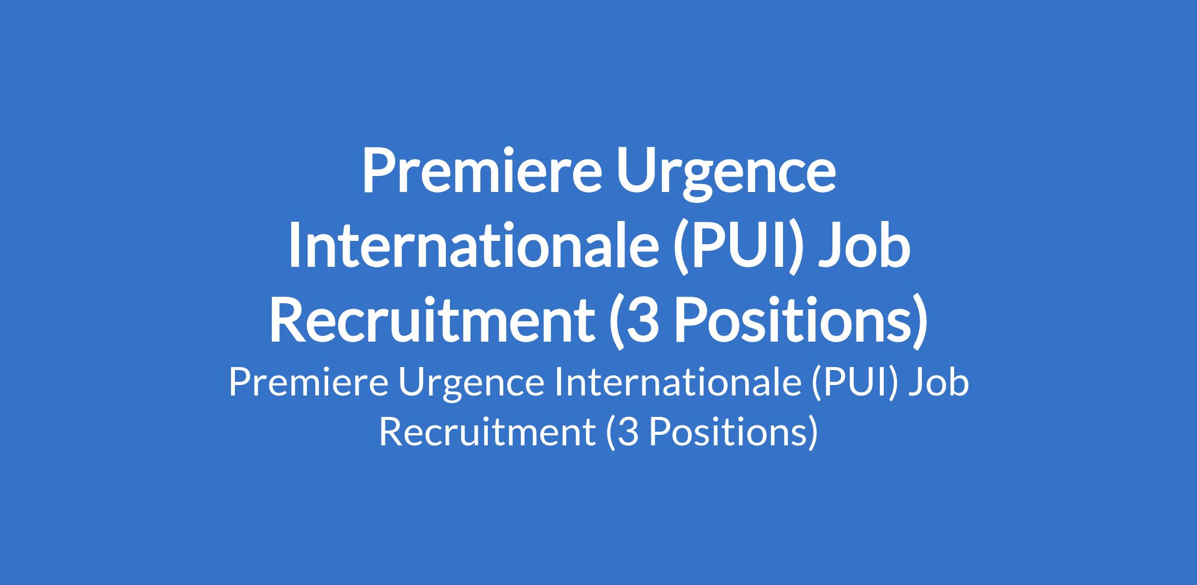 Premiere Urgence Internationale (PUI) Job Recruitment (3 Positions)