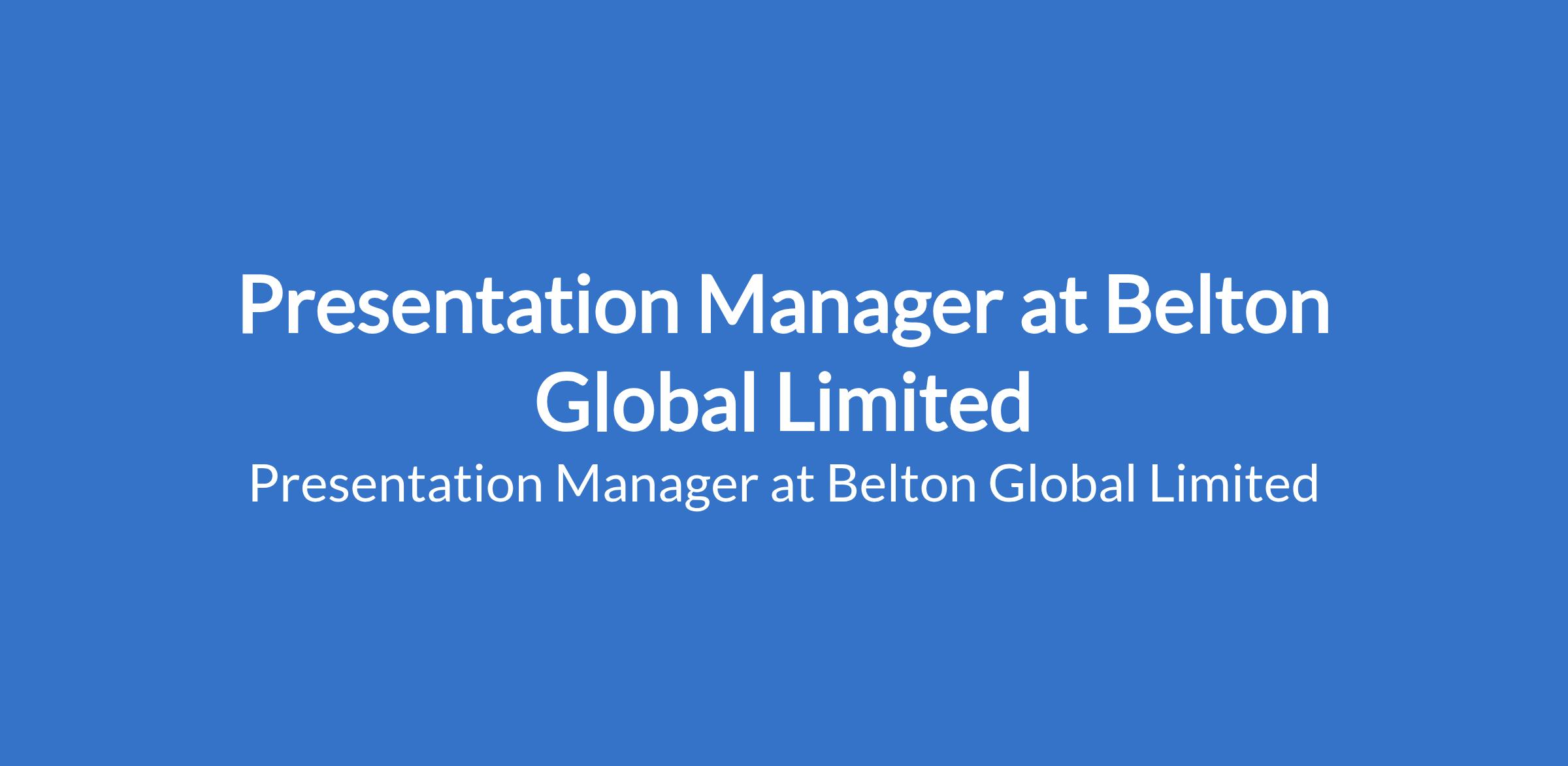 Belton Global Limited is recruiting to fill the position of: Presentation Manager. The Position is Located in Ikeja, Lagos State. Salary: N100,000 - N300,000 per month. Interested candidates should possess a Bachelors Degree in Business Administration, Marketing, Communications, or related field.