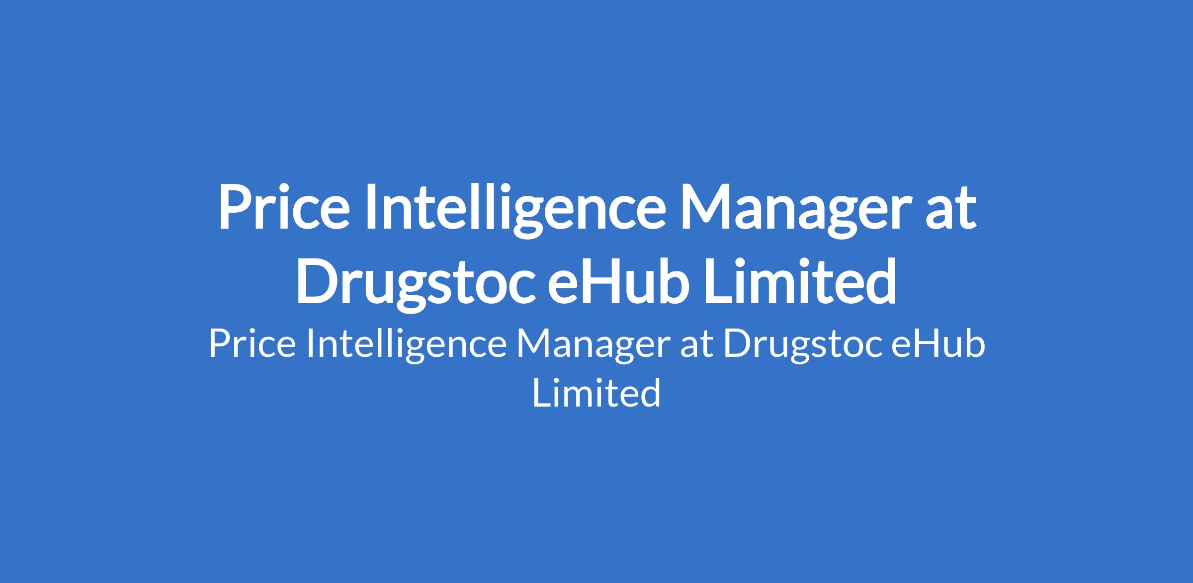 Drugstoc eHub Limited is recruiting to fill the position of: Price Intelligence Manager. The position is located in Lagos State. Interested candidates should possess a Degree in Finance, Economic or Pharmacy with a minimum of 5 years related work experience and experience in Pharmaceutical Industry will be an advantage.