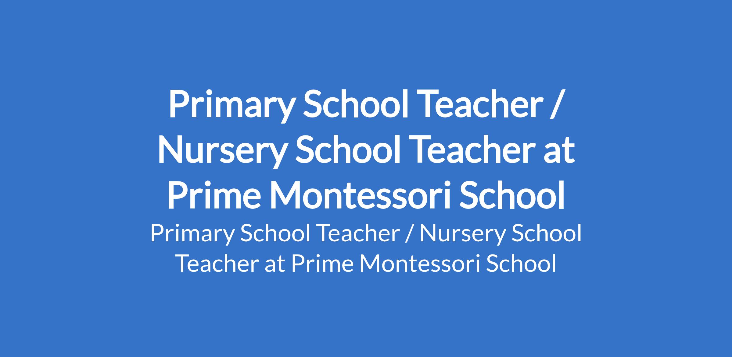 Prime Montessori School is recruiting to fill the position of: Primary School Teacher / Nursery School Teacher. The position is located in Lagos State. Interested candidates should possess a Bachelor's Degree in Education / Early Childhood Education with a minimum of 2 years teaching experience.