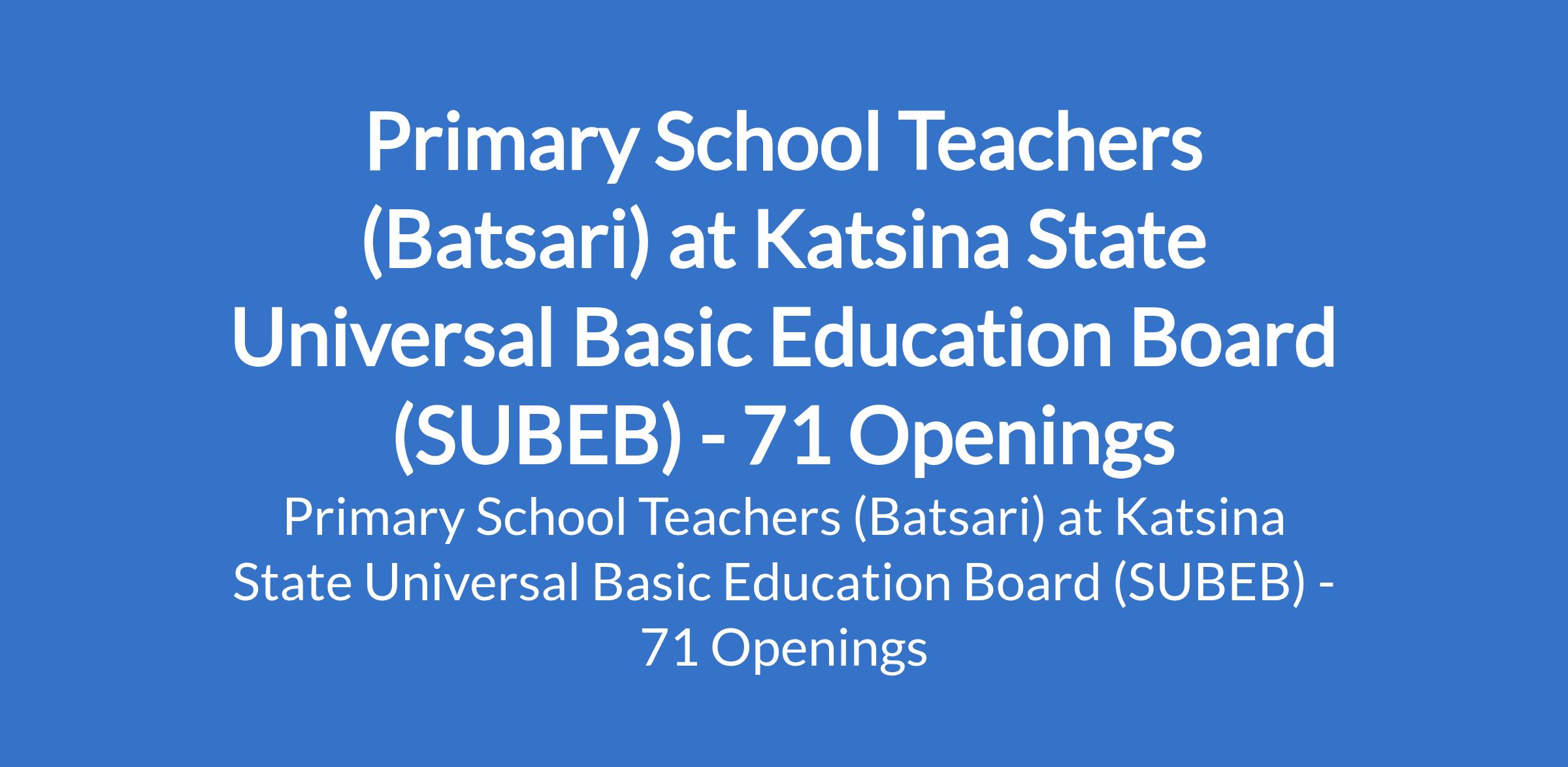 Katsina State Universal Basic Education Board (SUBEB) is inviting applications from suitable candidates to fill the position of: Primary School Teacher. The position is located in Batsari, Katsina State. Interested candidates should possess an NCE in a relevant field.