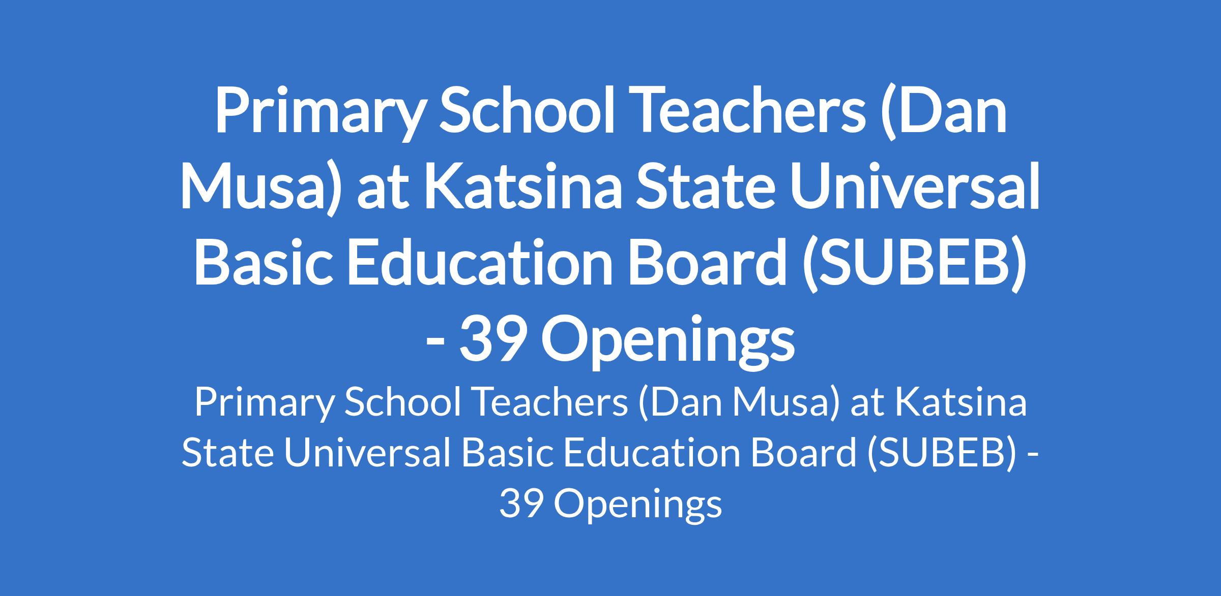 Katsina State Universal Basic Education Board (SUBEB) is inviting applications from suitable candidates to fill the position of: Primary School Teacher. The position is located in Dan Musa, Katsina State. Interested candidates should possess an possess an NCE in a relevant field.