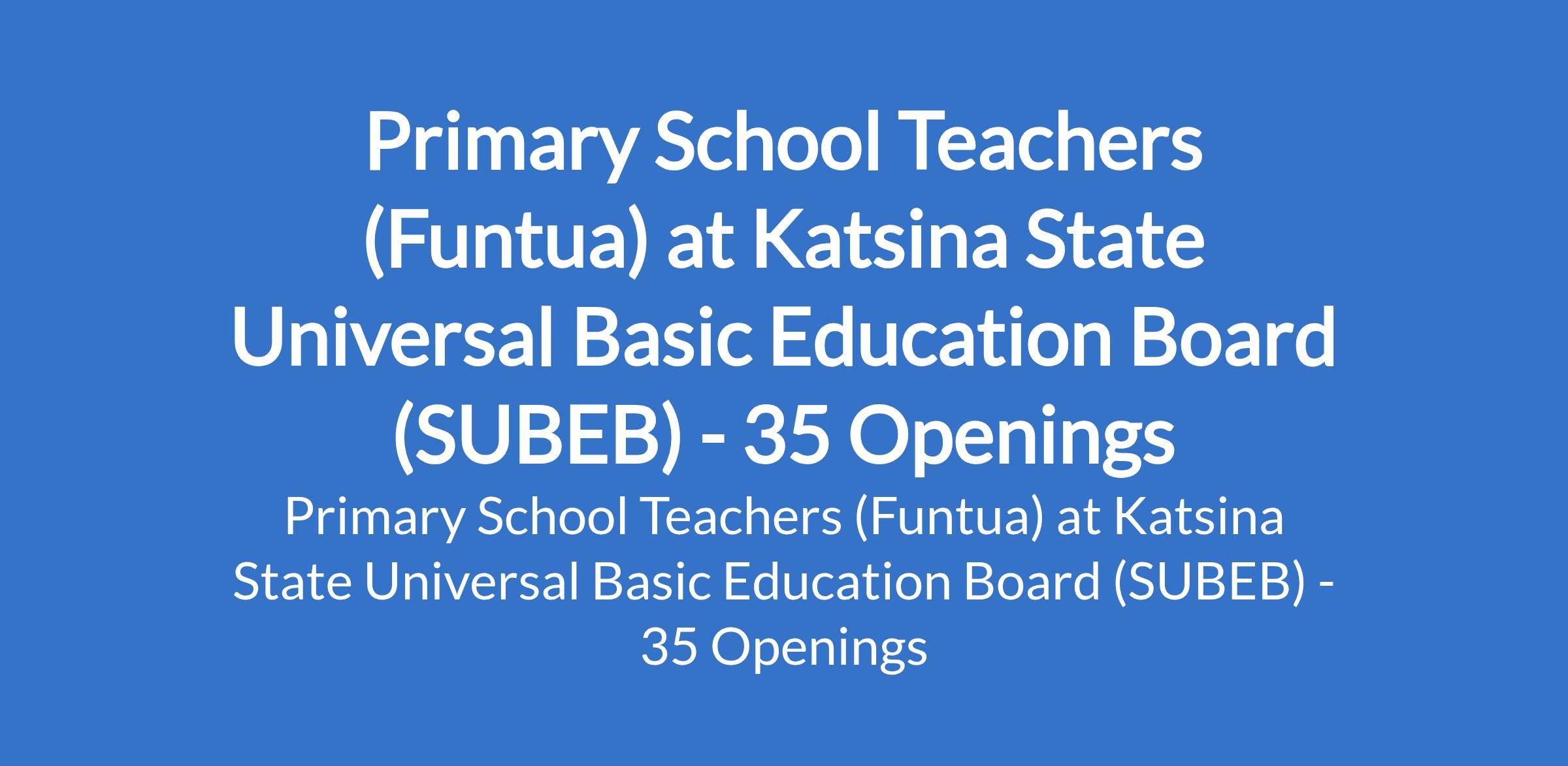 Katsina State Universal Basic Education Board (SUBEB) is inviting applications from suitable candidates to fill the position of: Primary School Teacher. The position is located in Funtua, Katsina State. Interested candidates should possess an possess an NCE in a relevant field.