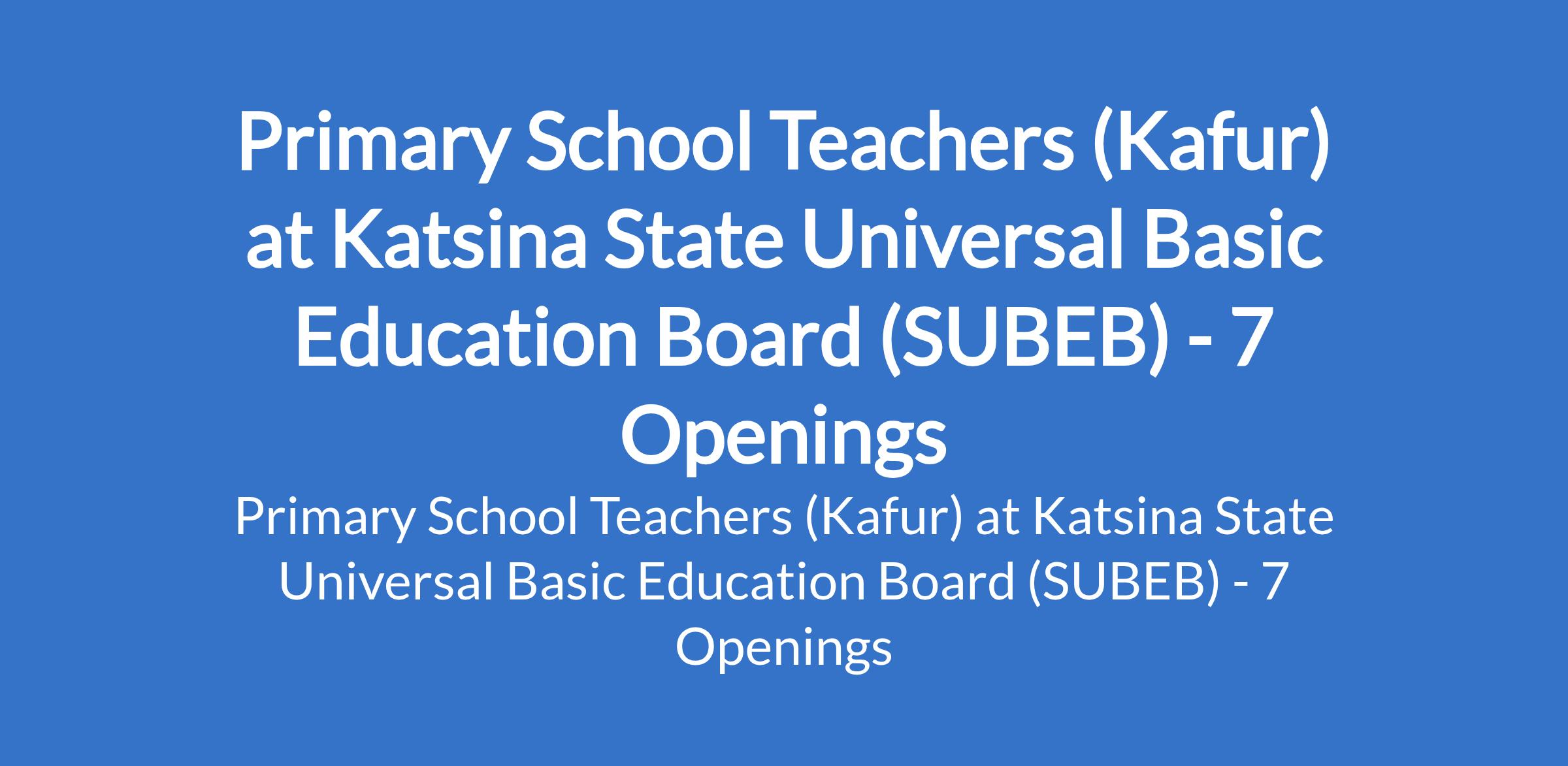 Katsina State Universal Basic Education Board (SUBEB) is inviting applications from suitable candidates to fill the position of: Primary School Teacher. The position is located in Kafur, Katsina State. Interested candidates should possess an NCE in a relevant field.