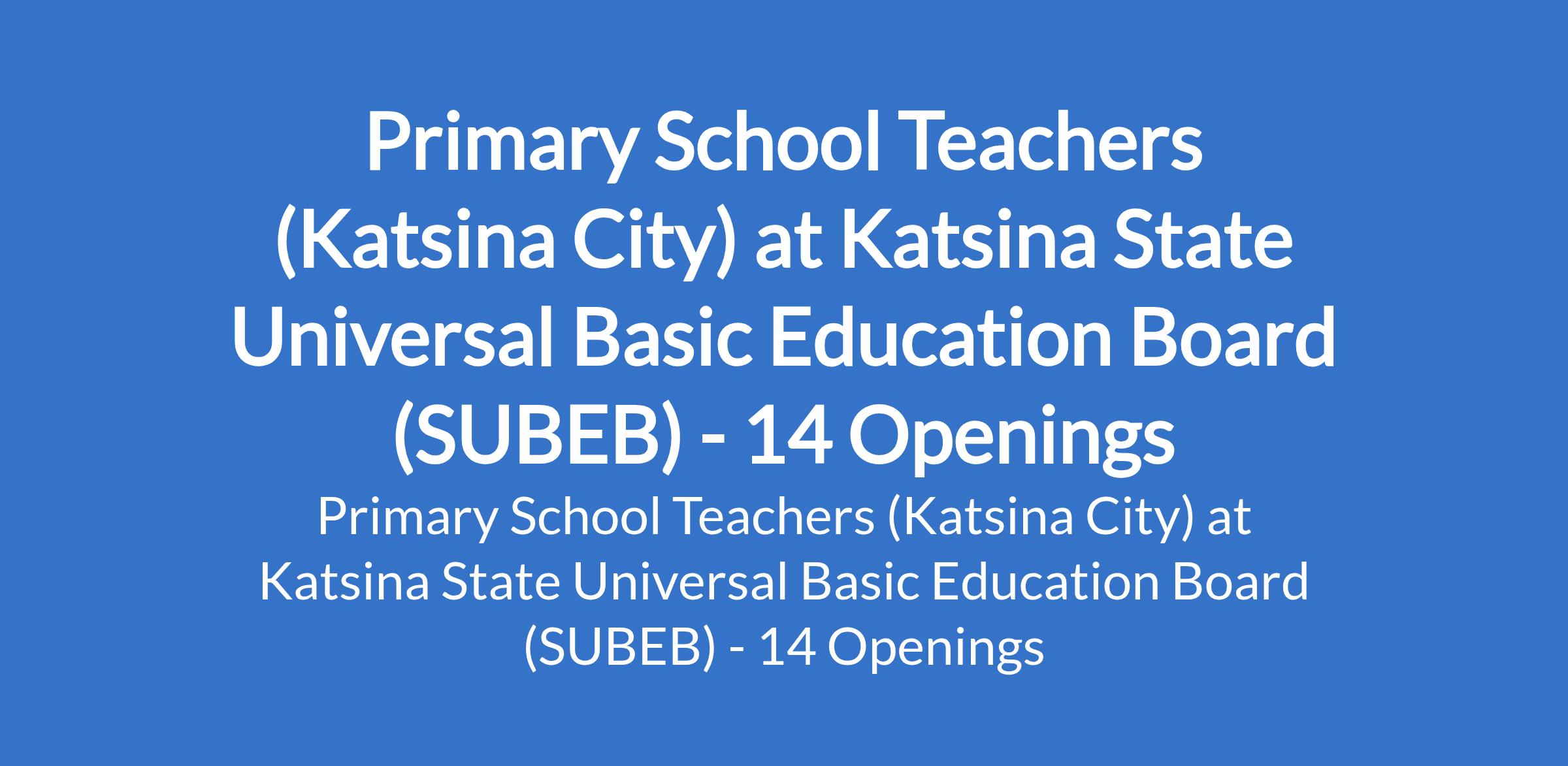 Katsina State Universal Basic Education Board (SUBEB) is inviting applications from suitable candidates to fill the position of: Primary School Teacher. The position is located in Katsina City, Katsina State. Interested candidates should possess an NCE in a relevant field.