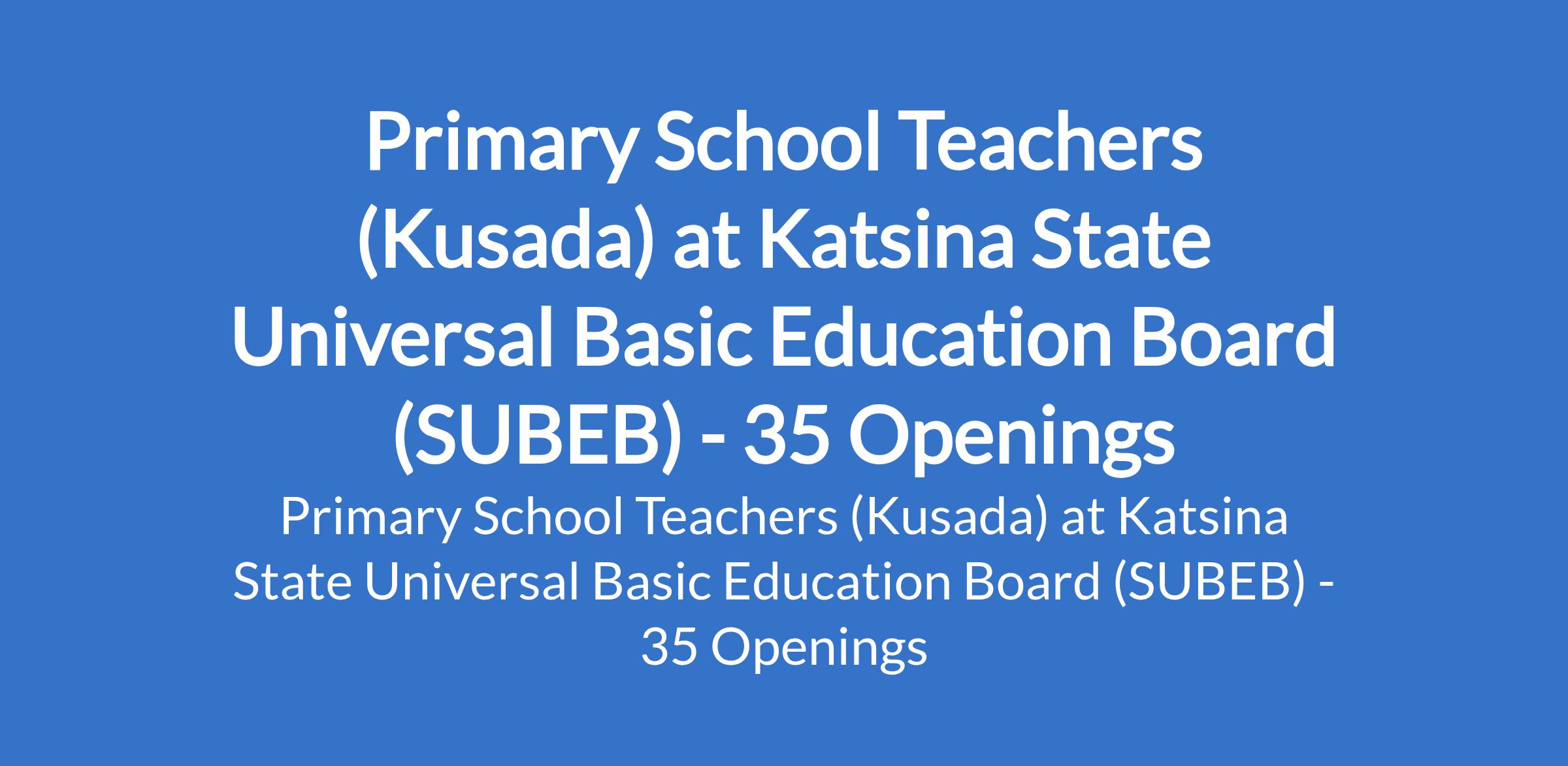 Katsina State Universal Basic Education Board (SUBEB) is inviting applications from suitable candidates to fill the position of: Primary School Teacher. The position is located in Kusada, Katsina State. Interested candidates should possess an NCE in a relevant field.