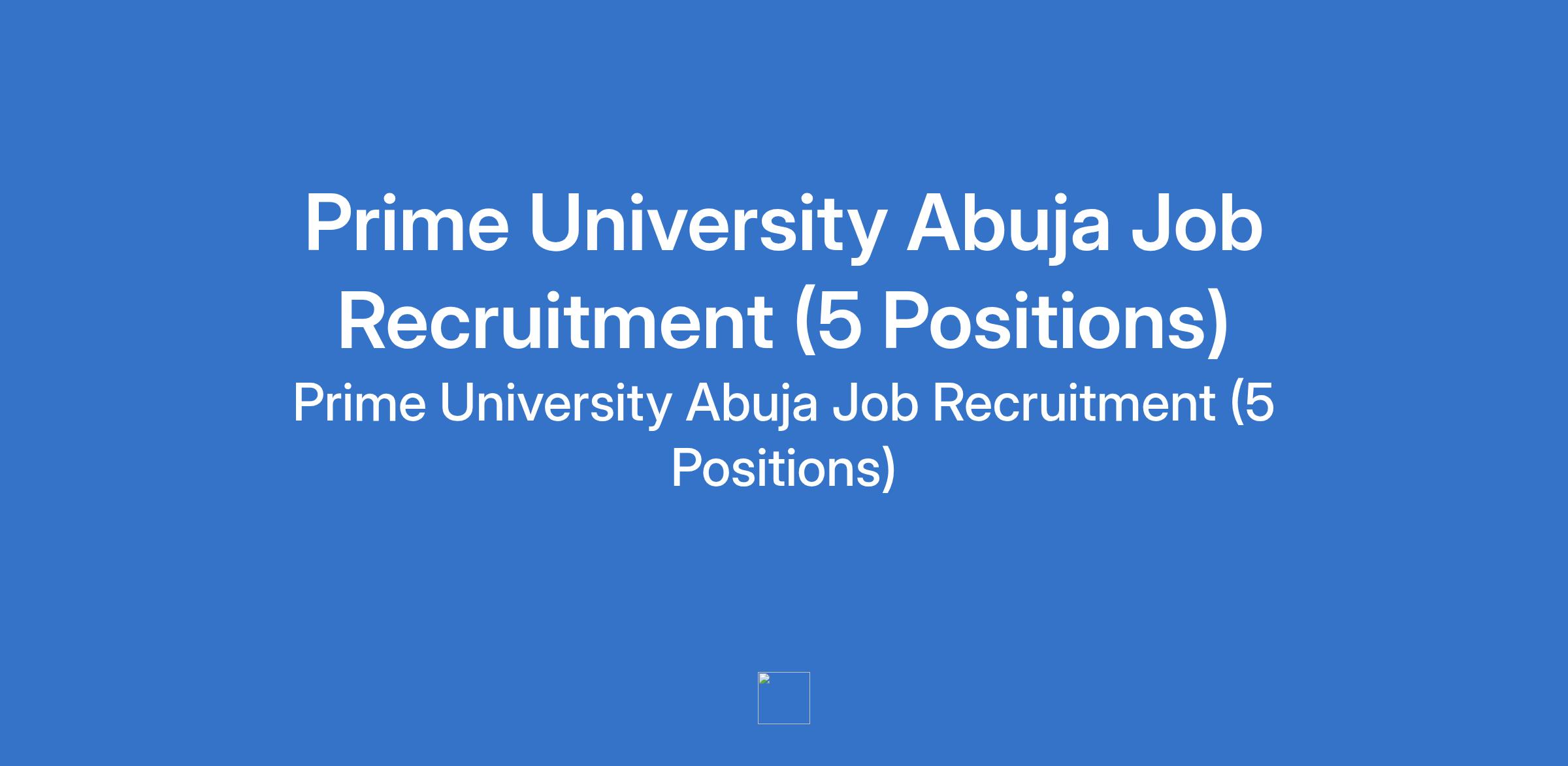 Prime University Abuja invites applications from suitable candidates to fill the following positions in Abuja (FCT): Senior Lecture, & Lecturer II.