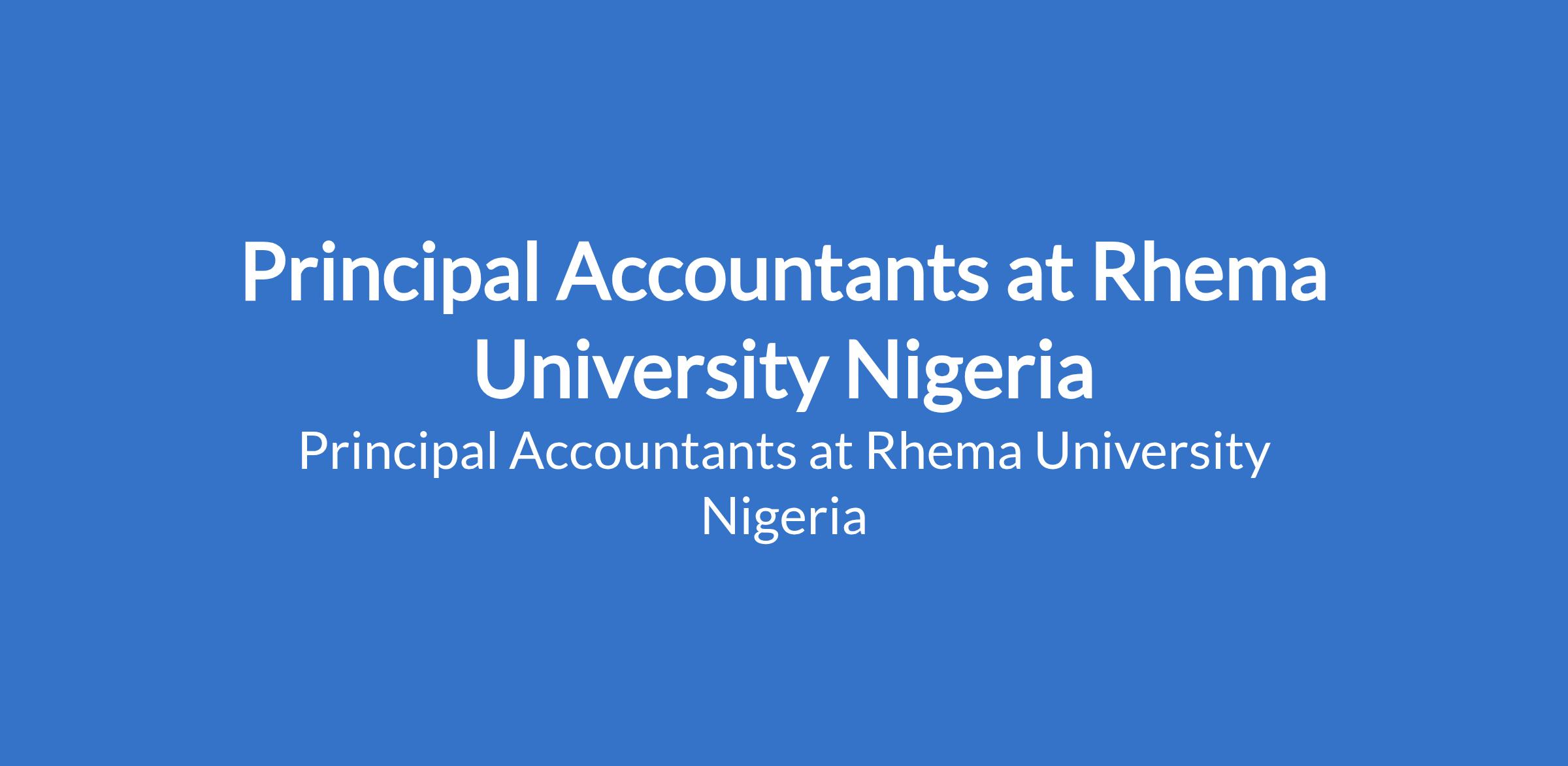 Rhema University Nigeria invites applications from suitably qualified candidates for the position of: Principal Accountant. The position is located in Aba, Abia State. Interested candidates should possess a good First or Second Degree in Accounting, Finance, Economics, or Business Administration and must as well be a qualified chartered accountant and a member of any of the following professional accounting bodies: ICAN, ANAN, ACA.