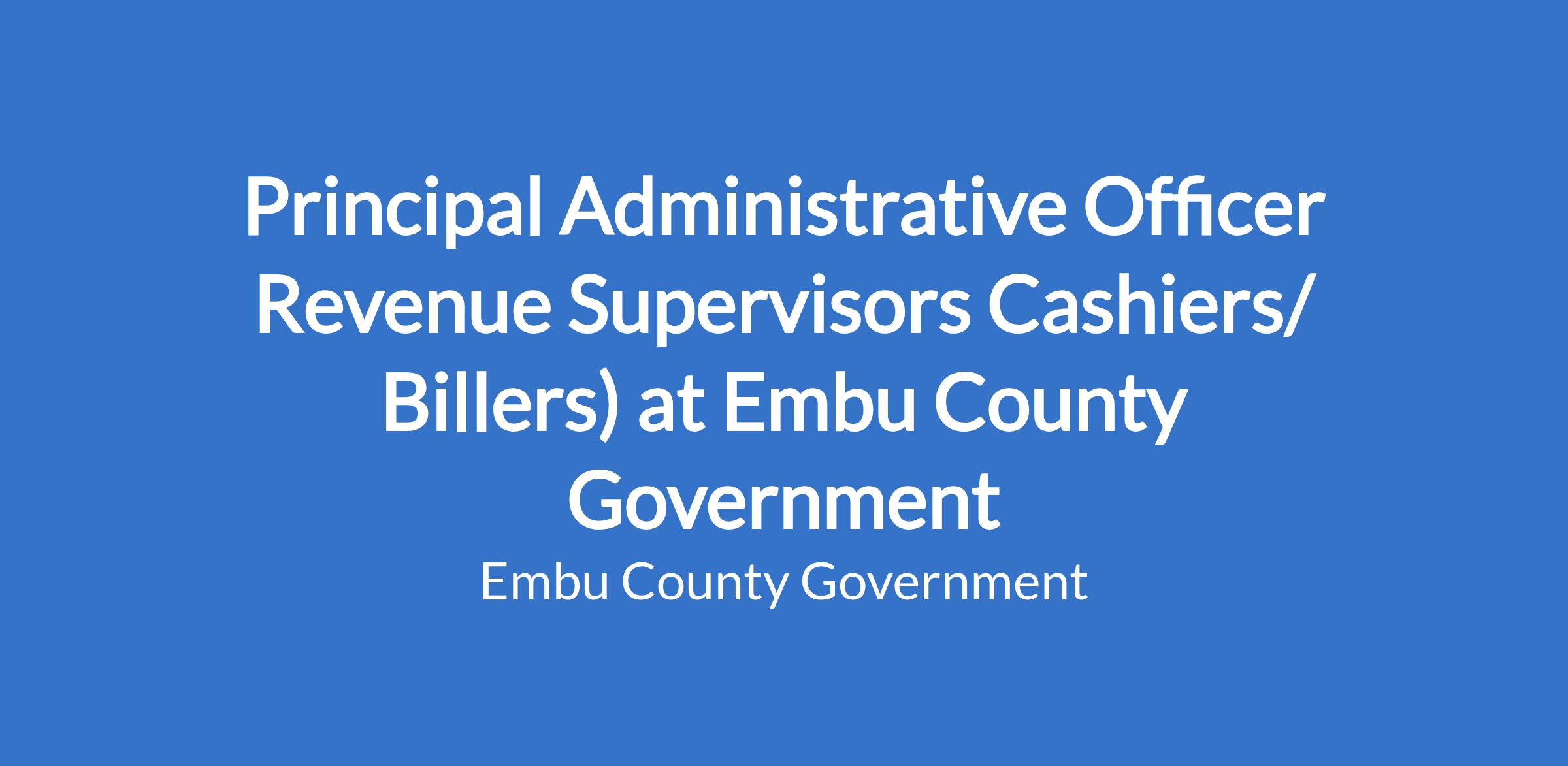 Principal Administrative Officer Revenue Supervisors Cashiers/ Billers) at Embu County Government