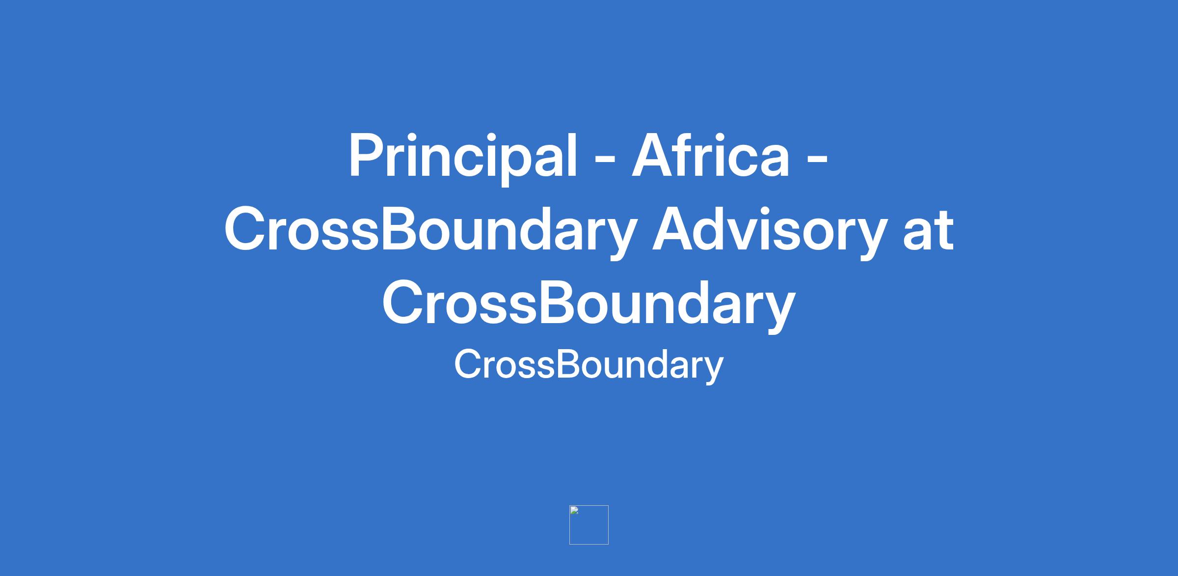 Principal - Africa - CrossBoundary Advisory at CrossBoundary