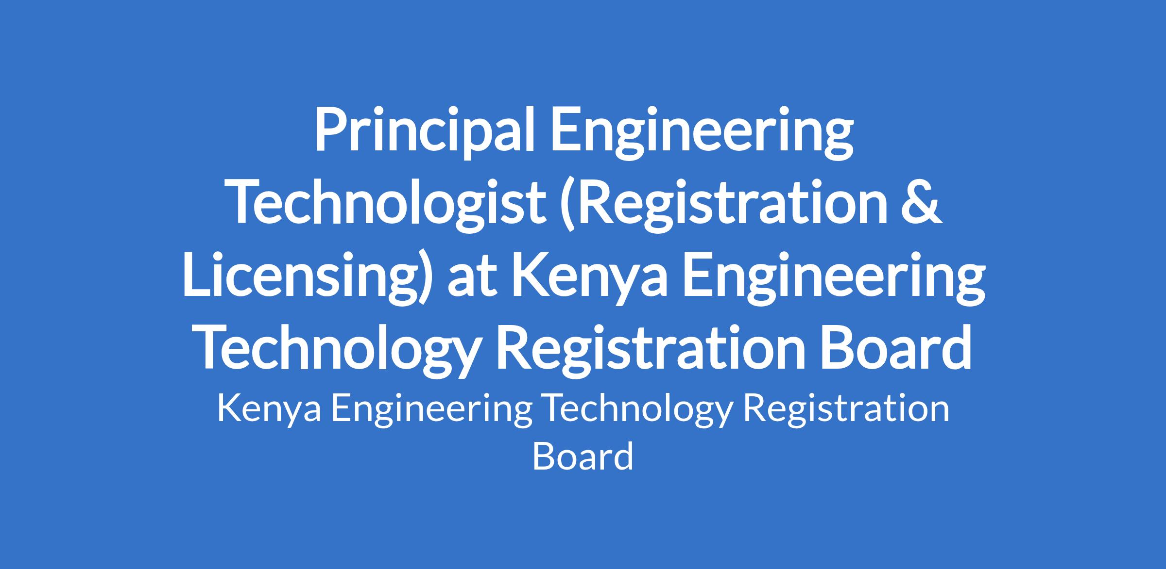 Registered with Kenya Engineering Technology Registration Board as a Professional Engineering Technologist;