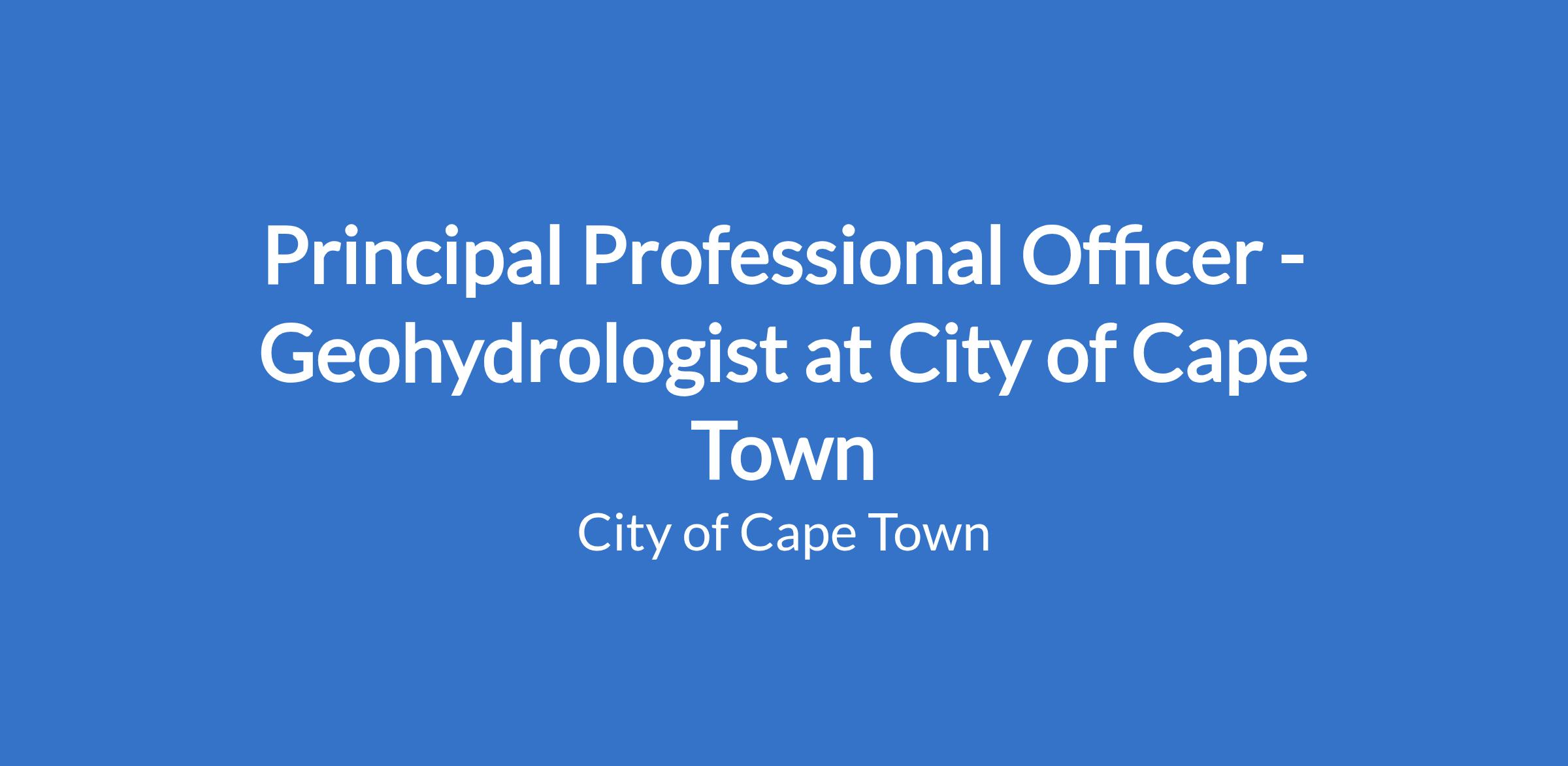 Principal Professional Officer - Geohydrologist at City of Cape Town