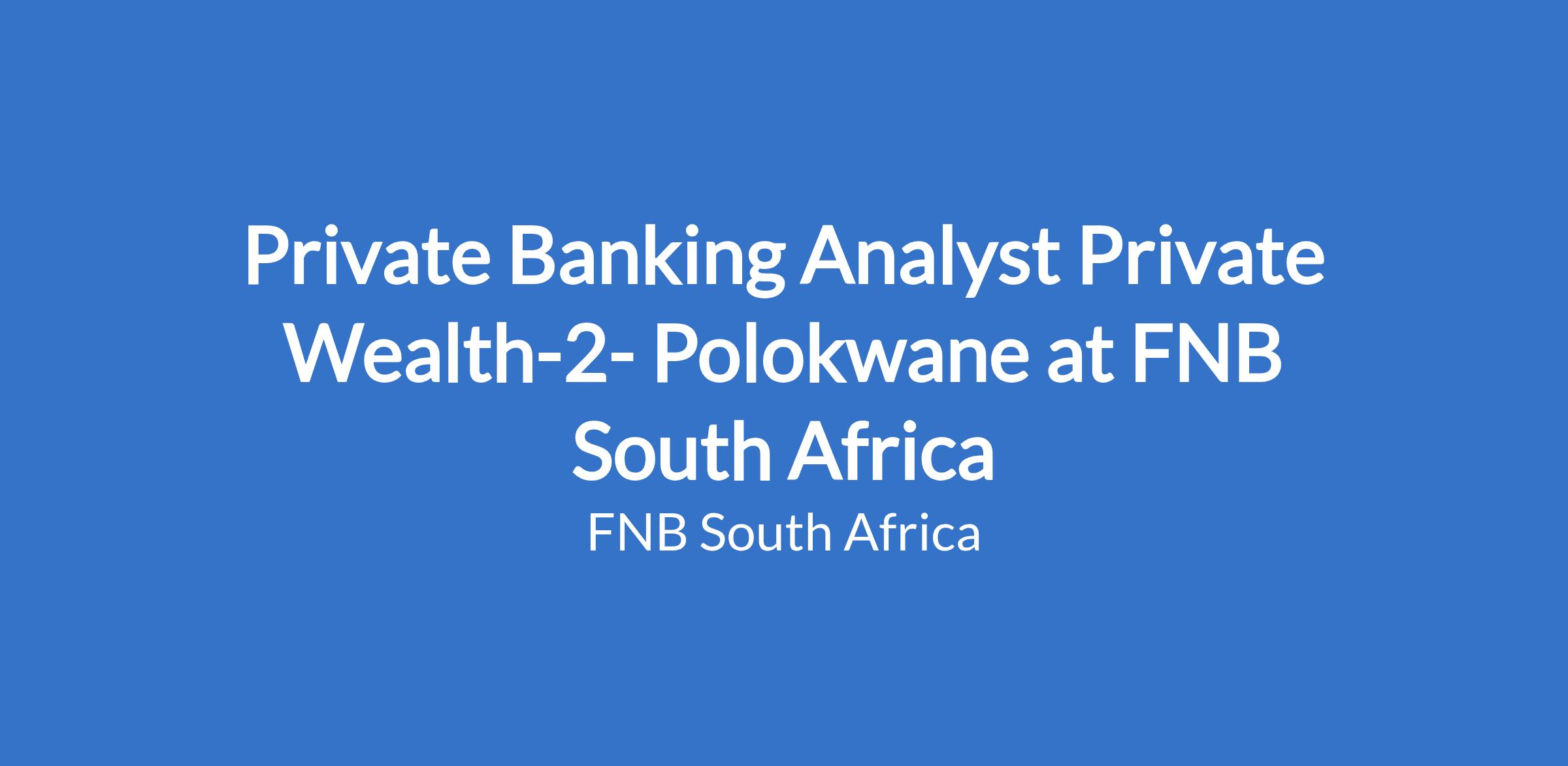 Private Banking Analyst Private Wealth-2- Polokwane at FNB South Africa