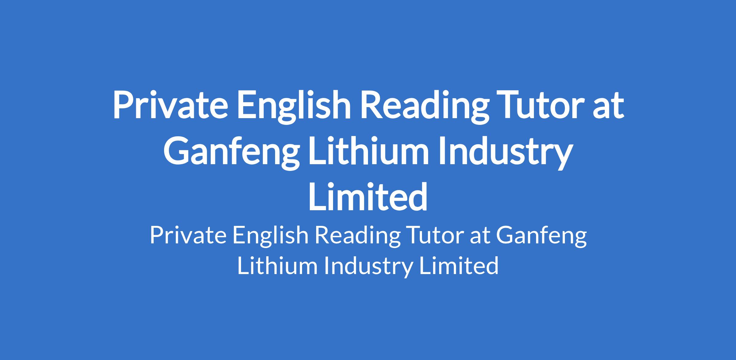 Ganfeng Lithium Industry Limited is recruiting to fill the position of: Private English Reading Tutor. The position is located in Abuja (FCT). Interested candidates should possess relevant qulaifications with experience teaching or tutoring primary school children.