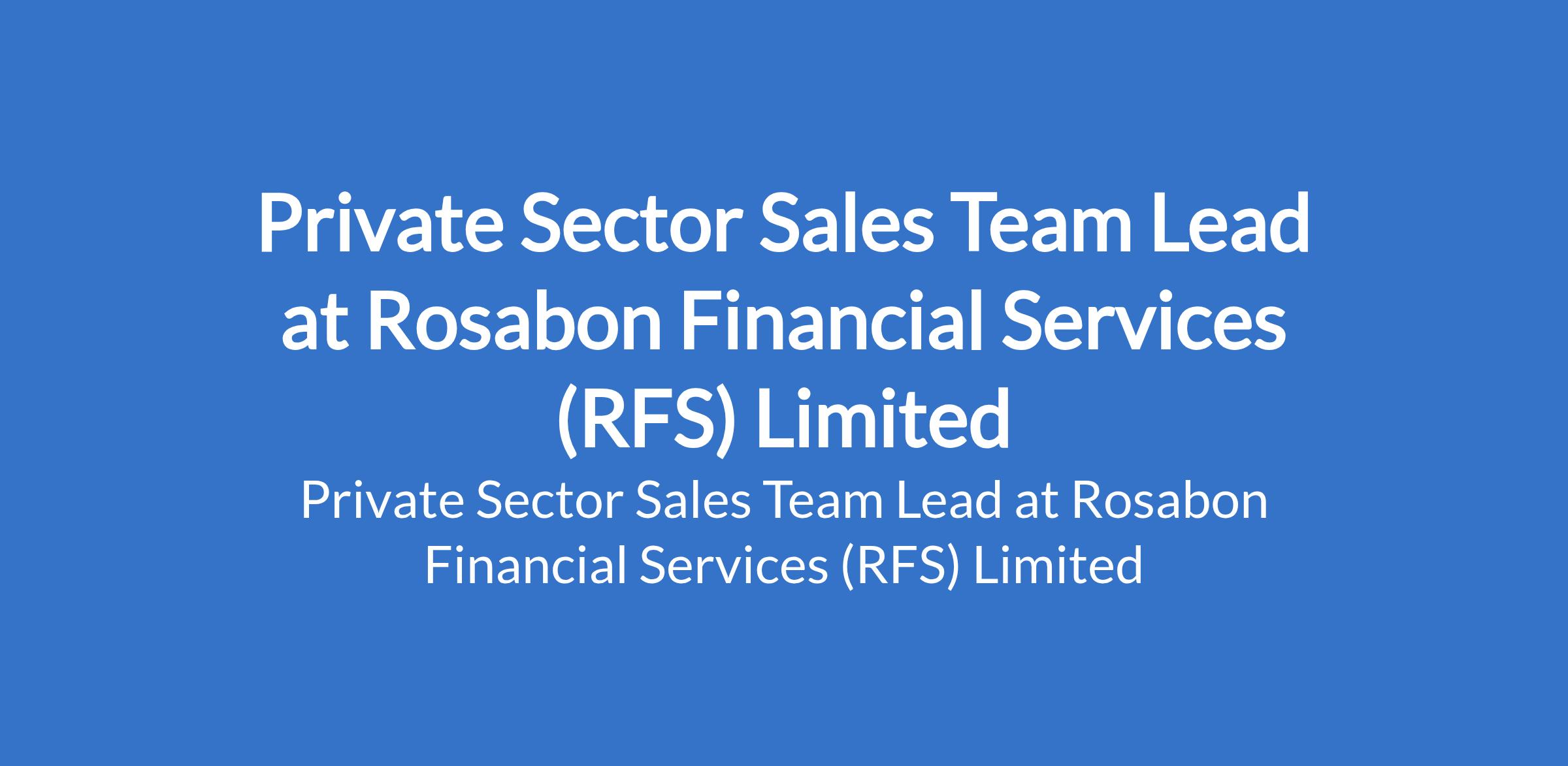 Rosabon Financial Services (RFS) Limited is recruiting to fill the position of: Private Sector Sales Team Lead. The position is located in Ogun State. Salary: N230,000 - N300,000 monthly. Interested candidates should possess a First Degree in any discipline with 5 years+ of progressive experience in sales and marketing of financial products (Consumer Lending).