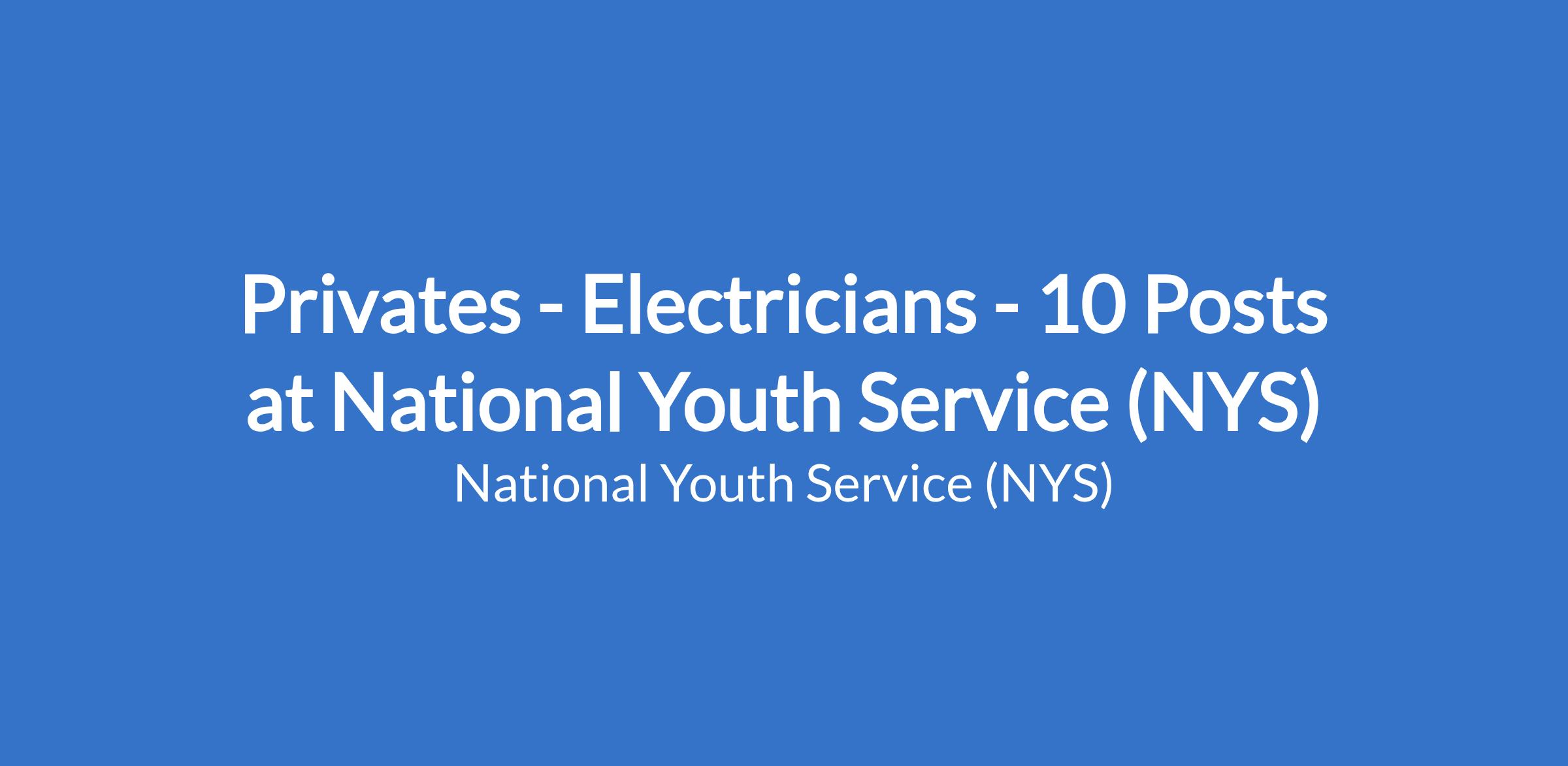Privates - Electricians - 10 Posts at National Youth Service (NYS)
