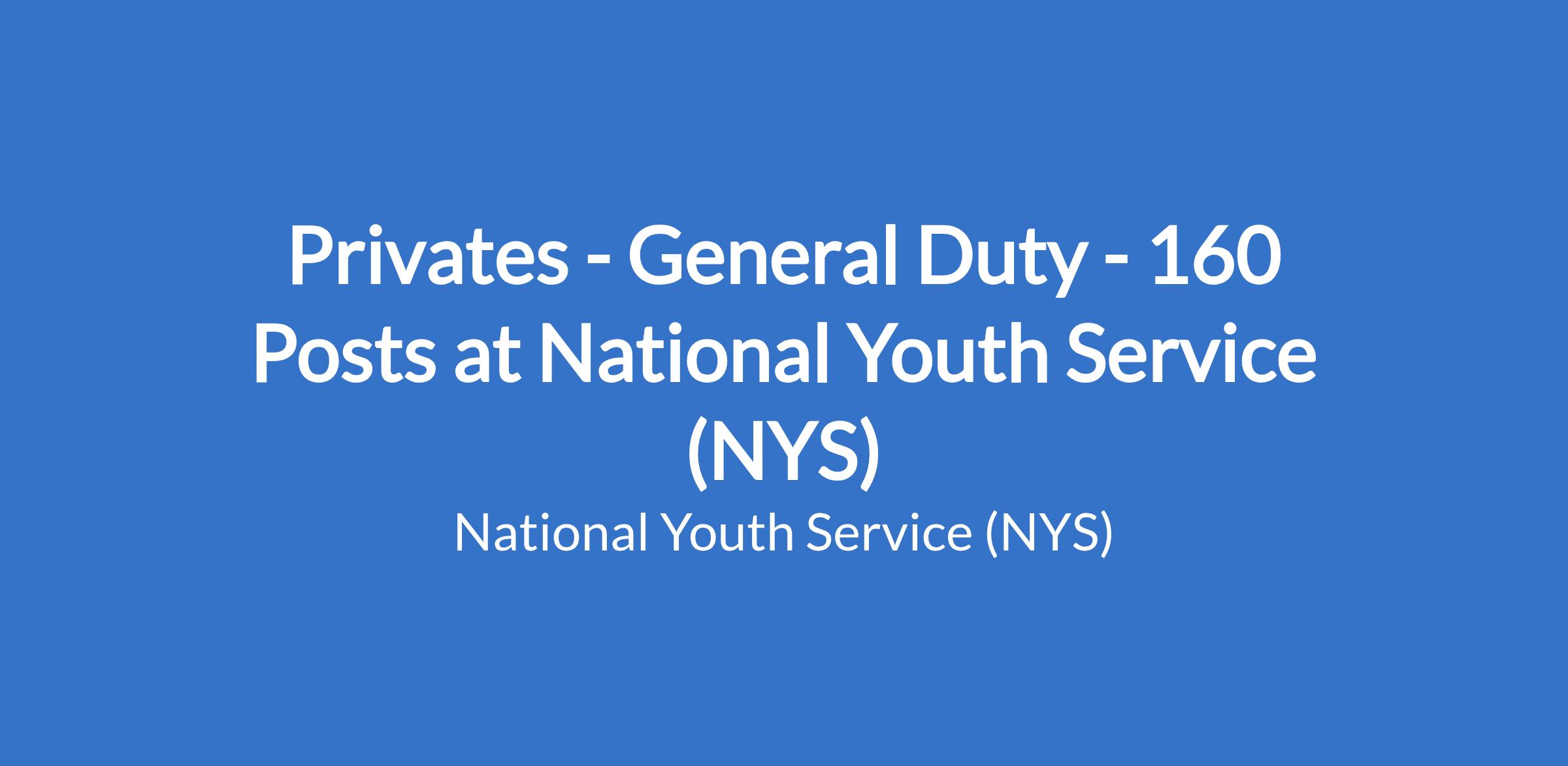 Privates - General Duty - 160 Posts at National Youth Service (NYS)