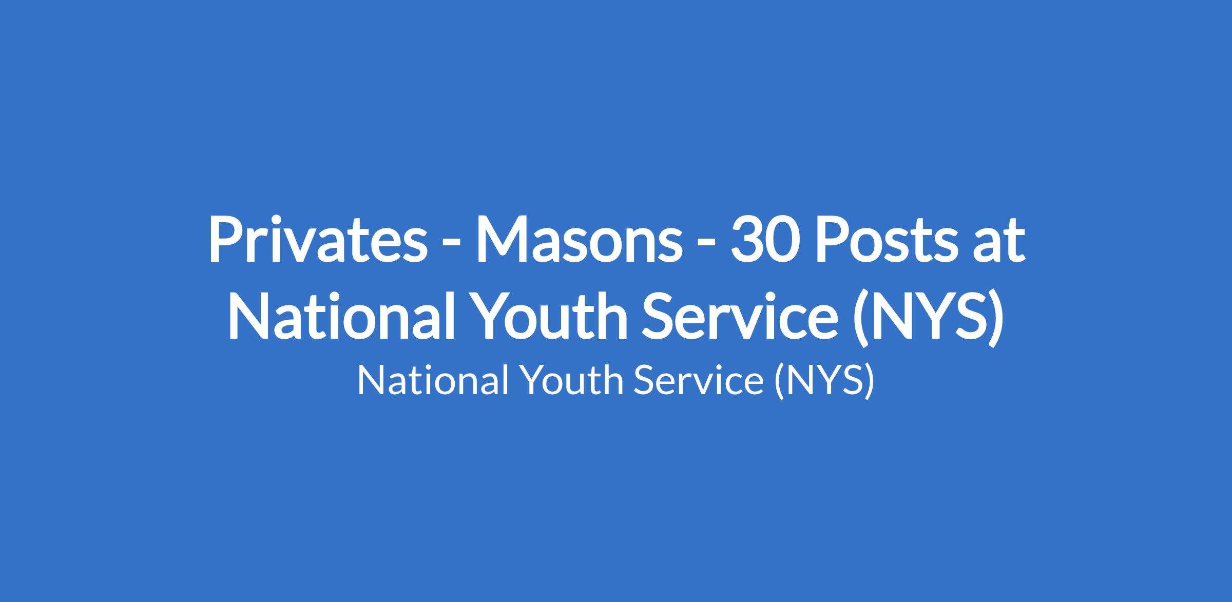 Privates - Masons - 30 Posts at National Youth Service (NYS)