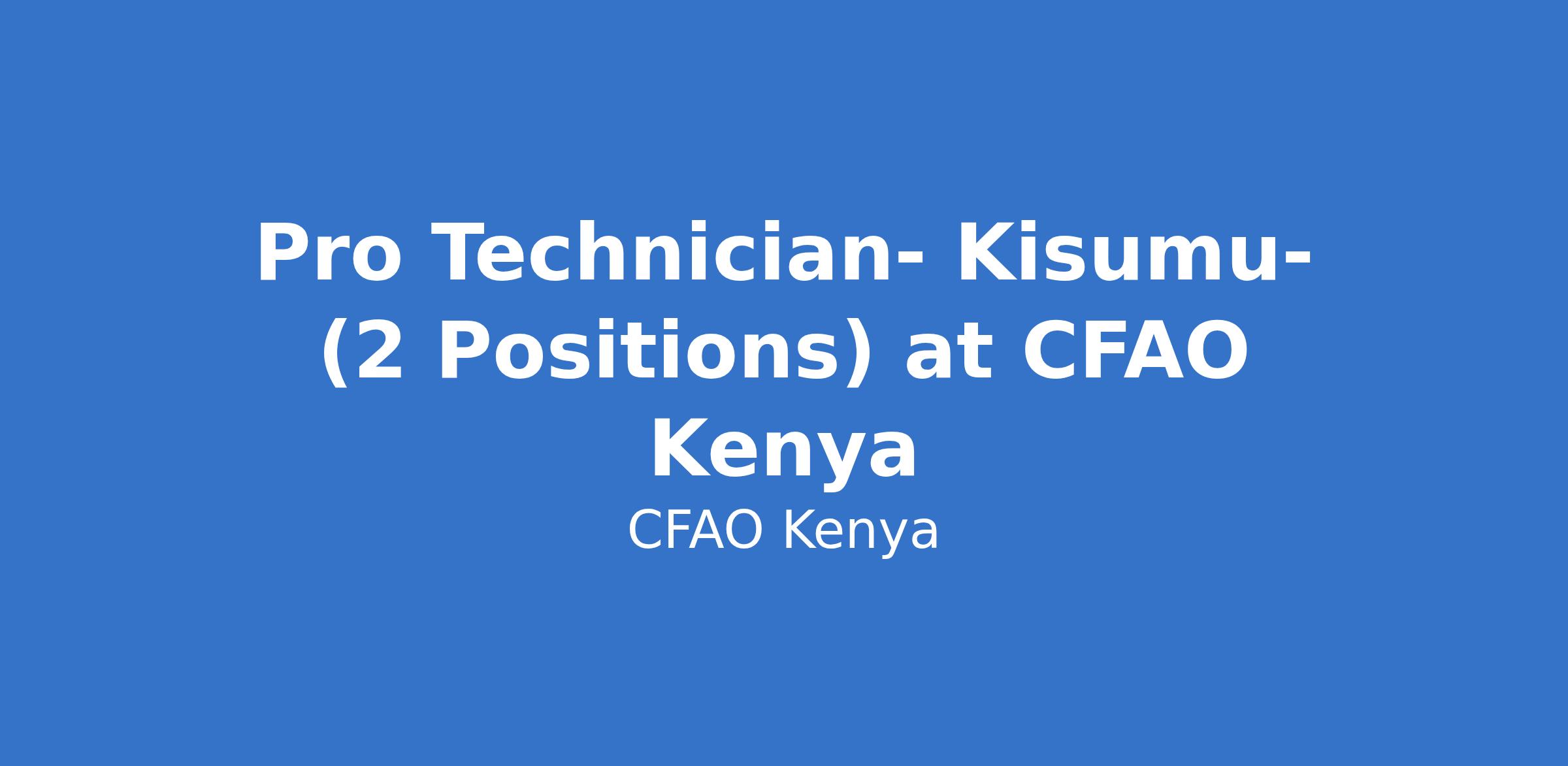 Pro Technician- Kisumu- (2 Positions) at CFAO Kenya