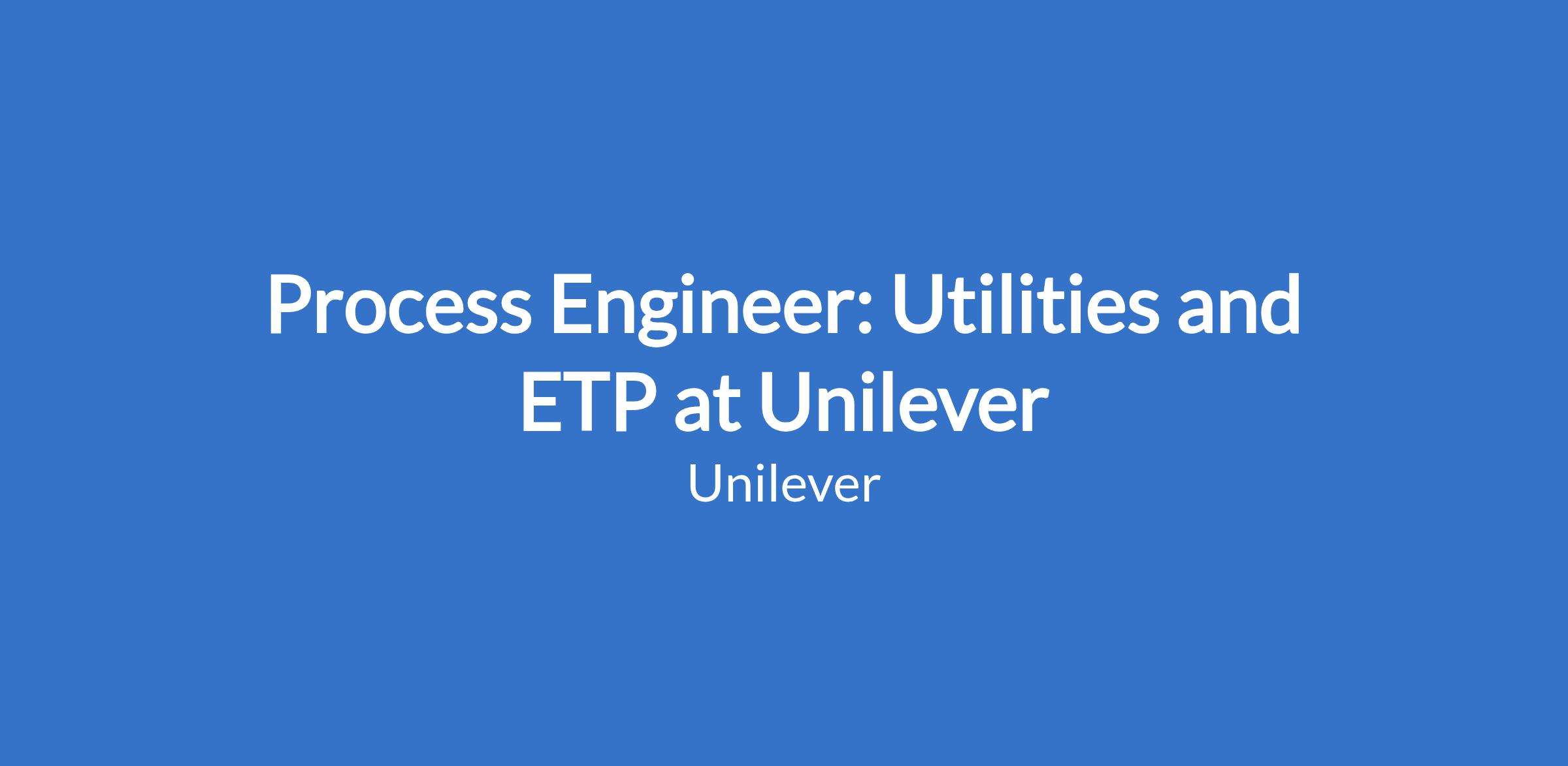 Process Engineer: Utilities and ETP at Unilever