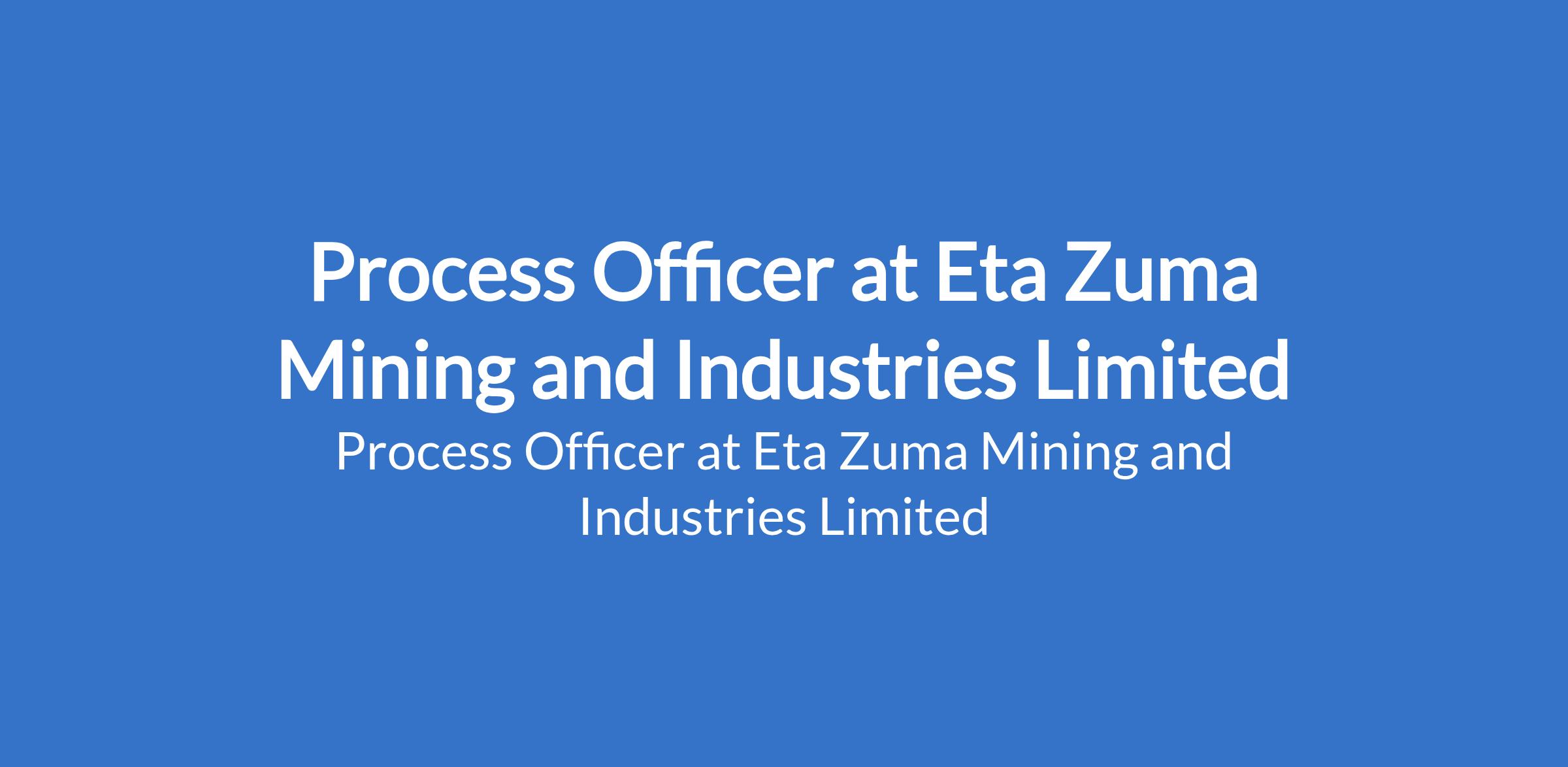 Eta Zuma Mining and Industries Limited is recruiting to fill the position of: Process Officer. The position is located in Abuja (FCT). Interested candidates should possess a Bachelors Degree in Business Administration, Economics, Finance, or other analytical discipline with a minimum of 5 years cognate experience in process improvement or related roles.