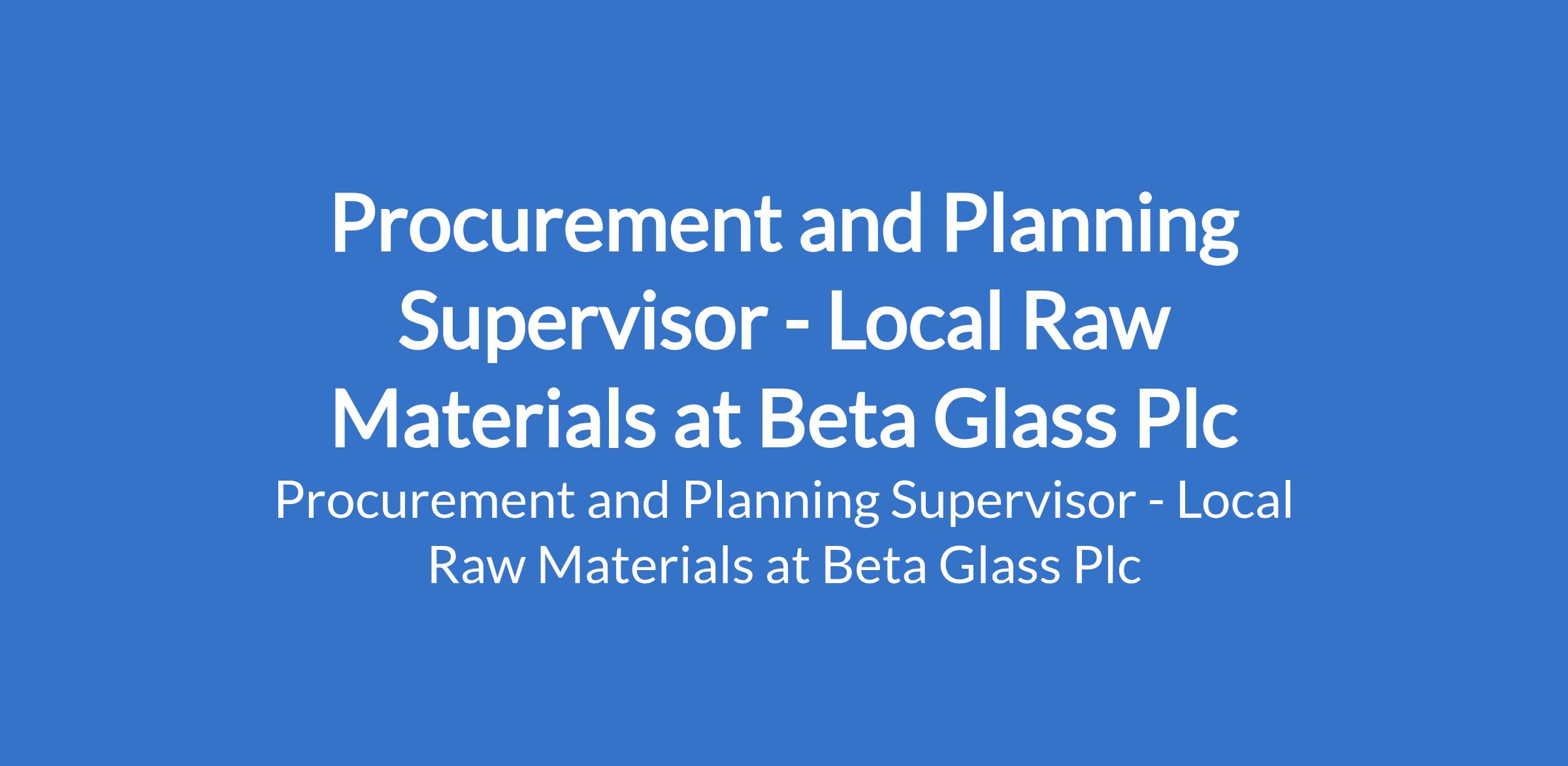 Beta Glass Plc is recruiting to fill the position of: Procurement and Planning Supervisor - Local Raw Materials. The position is located in Agbara, Ogun State. Interested candidates should possess a Bachelor's Degree or Higher National Diploma (HND) in Supply Chain, Accounting, Economics or related discipline with 7 - 10 years experience in a similar role.